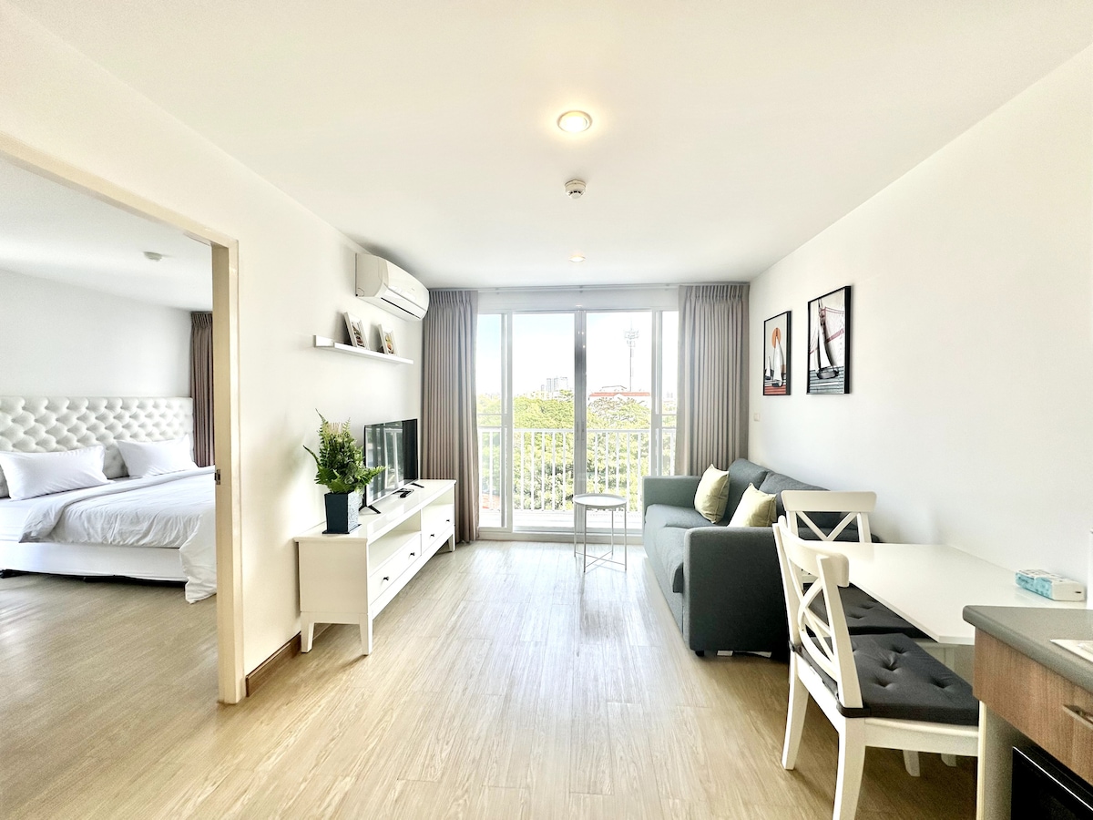 ✨ Modern 1-bedroom apartment + comfy sofa bed, perfect for up to 3 guests! 🏡 Enjoy top-notch amenities like a swimming pool 🏊, gym 🏋️, and free private parking 🚗. The unit features a kitchenette 🍽️ with a microwave and fridge, plus air conditioning ❄️ for a comfortable stay. Easy access to public transport 🚆, making city exploration a breeze! 🌆 Just 400m to Rajamangala Stadium 🎤, the biggest concert venue! 🎶 Close to shops & restaurants—ideal for any stay! 🌟