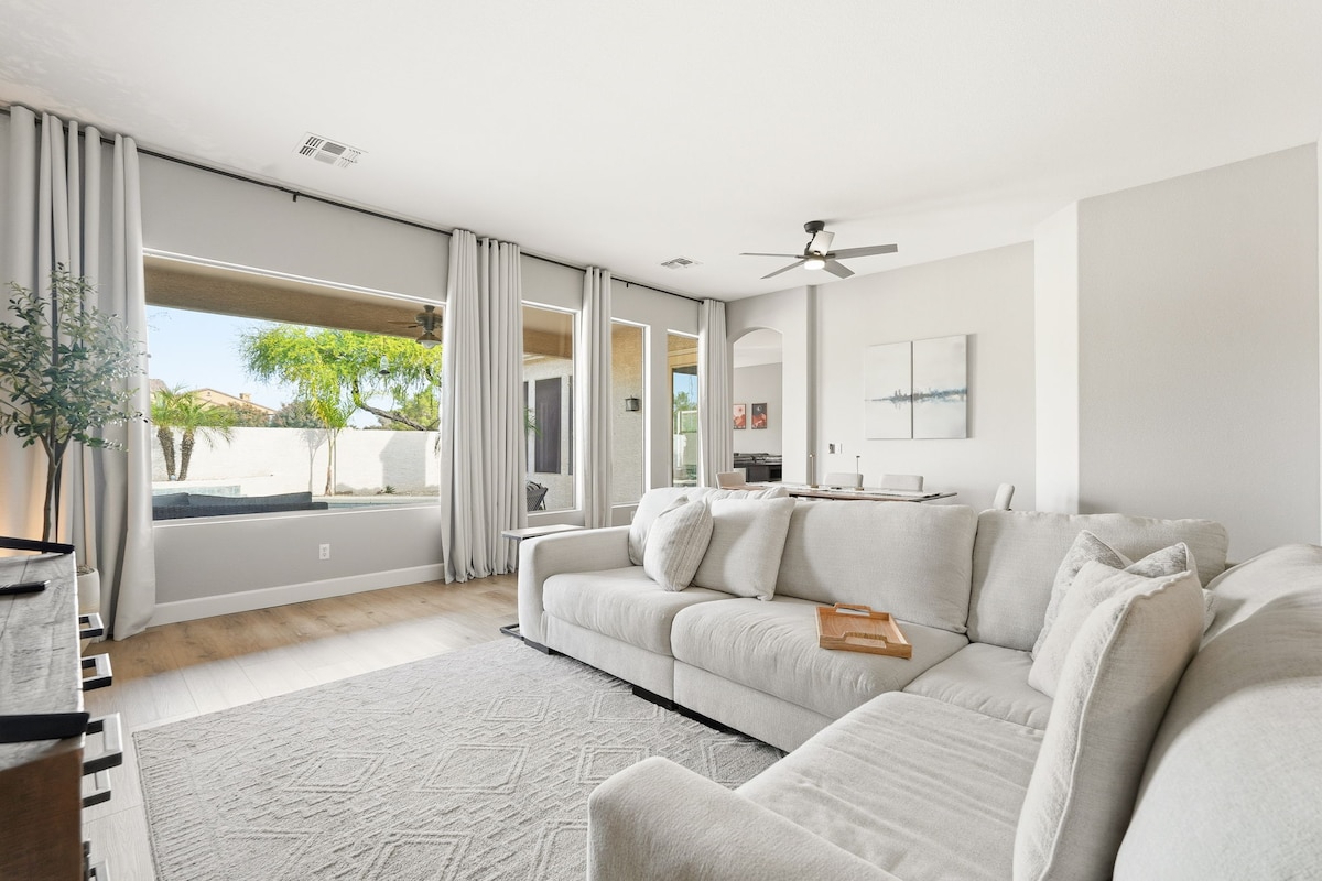 Welcome to AZ GO RENTALS' newly built 2022 custom home- a spacious 1,500 sq ft single-story, 3BD/2BA retreat. This is totally separate building, very modern house which includes a 2-car garage and parking for 2 additional vehicles, set on a private 1-acre property behind the owner's house. You'll enjoy a sleek, open kitchen, refreshing showers, ultra-comfortable beds and a spotless living space. Guests also have access to a pickleball court (waiver required prior check-in). License: 21445829