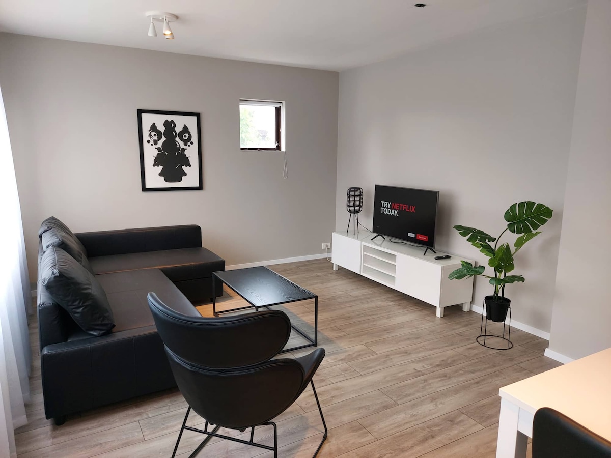 Modern, bright 1-bedroom apartment in peaceful Garðabær, perfect for 2 guests. Cozy and stylish, with a fully equipped kitchen, comfy living space, and a clean bathroom. Enjoy nearby walking paths, restaurants, and grocery stores in a relaxed neighborhood. Just a short drive to Reykjavík, offering both tranquility and easy access to downtown Reykjavík where you can explore the city and the lively nightlife. The apartment is ideal for couples or solo travelers.