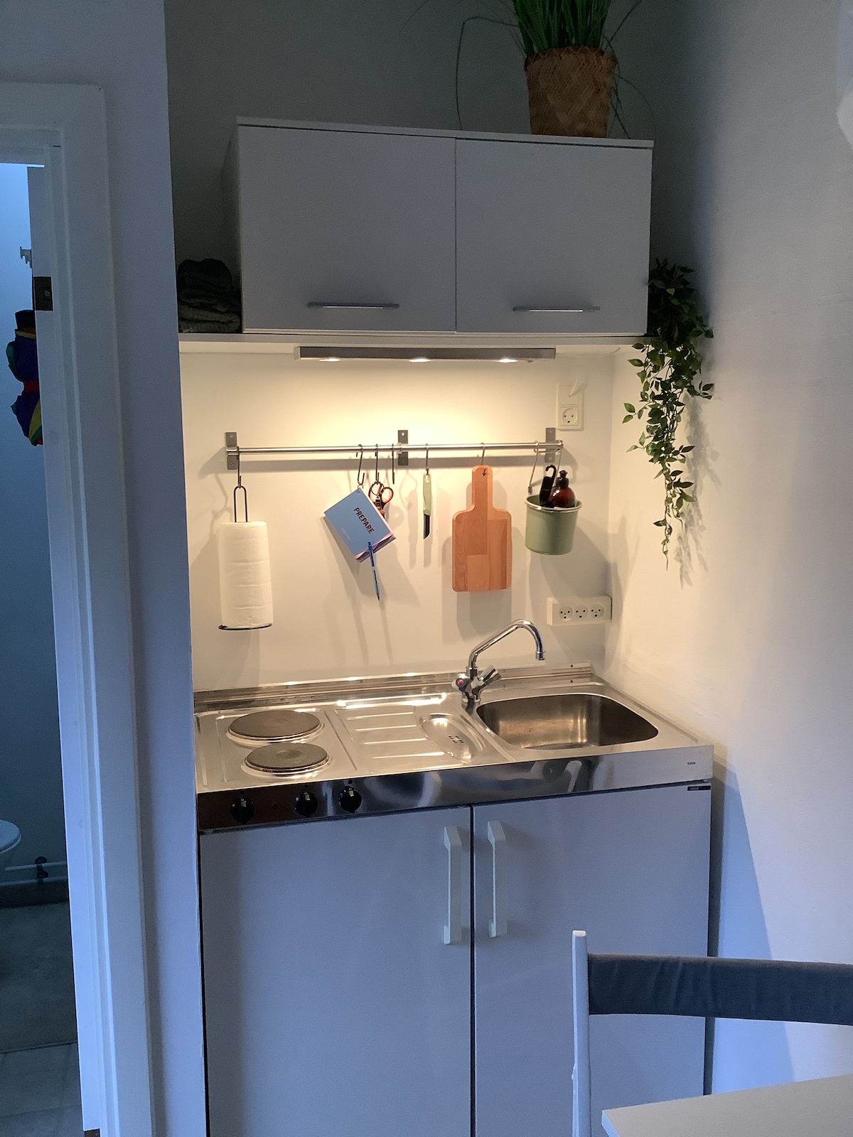 *See corona precautions below* Modern one-room apartment in an annex with its own terrace. The apartment consists of a room with 3-4 beds, a bathroom with underfloor heating, a shower and a kitchen. As a host, I want to help with ideas for what to do in the area of Tåsinge and southern Funen. I also like to share my favorite eateries, hikes, beaches, shopping, bike routes, etc. I can't wait to welcome you.