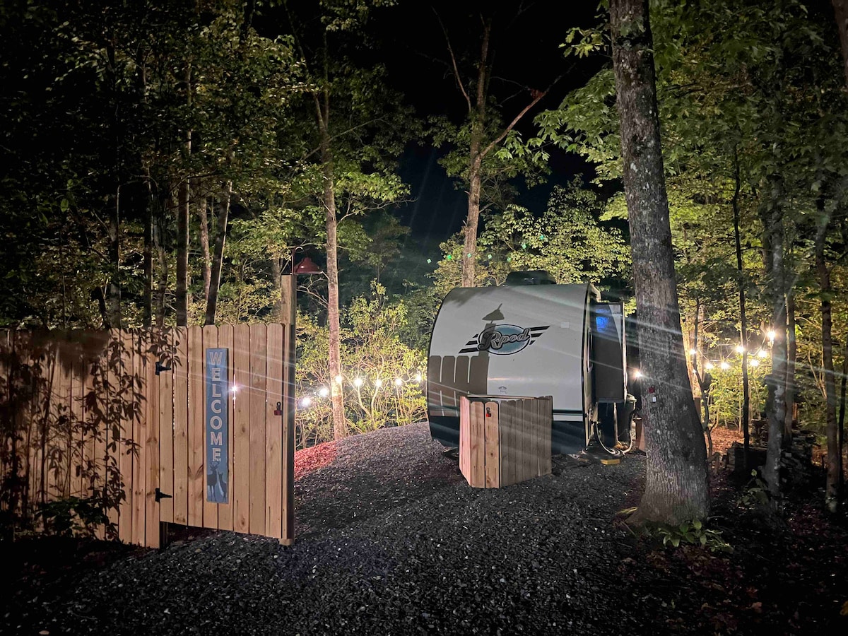Nestled in the Smoky Mountains and just a short walk to beautiful Fontana Lake, this cozy RV is the perfect glamping escape. It sleeps up to 5 with a queen bed, two twins, and a futon. Gather around the fire pit, sip your coffee with mountain views, and let the crisp mountain air melt your worries away. Enjoy access to pontoon rentals, kayak and paddle board rentals, or a personal cruise. Whether you're here to unwind, explore, or adventure on the water—this is glamping at its best.
