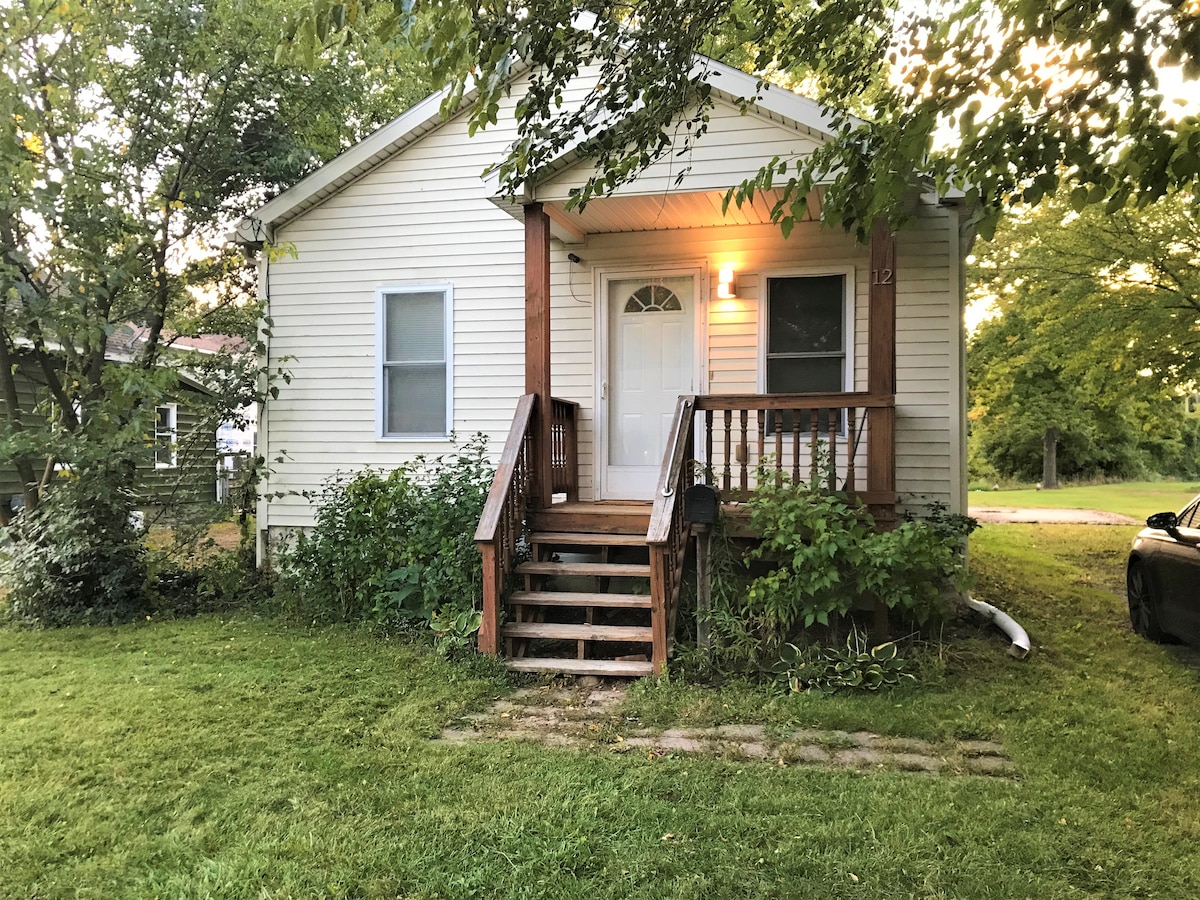 Unique one-room cottage on the bank of the Huron River. A half-mile walk to the pedestrian-friendly Village of Milford, known for its array of shops, restaurants, outside dining, concerts, and festivals. Perfect bungalow for single, couple, or small family. Living area has double sofa bed. Tiny home with many unique features. Fire pit at river's edge for relaxing or roasting marshmallows, and a gas grill on the dining patio. Two sit-in kayaks available May 15–Oct. 15.