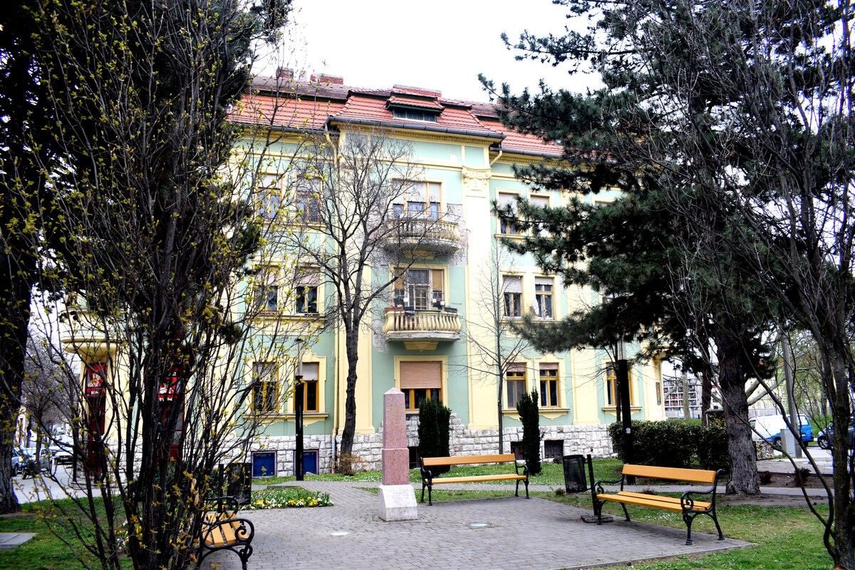 Free street parking in front of the house. The apartment is 600 meters from the adventure bath (Rába Quelle Spa, Thermal and Adventure Bath), 9 minutes from the historical center of Győr (Vienna Gate Square). The balcony of the apartment overlooks the Bercsényi Grove, which was once the riverbed of the Rába. The name of the district is not accidentally Sziget, as it is bordered by rivers (Rába, Rábca, Kis-Duna)