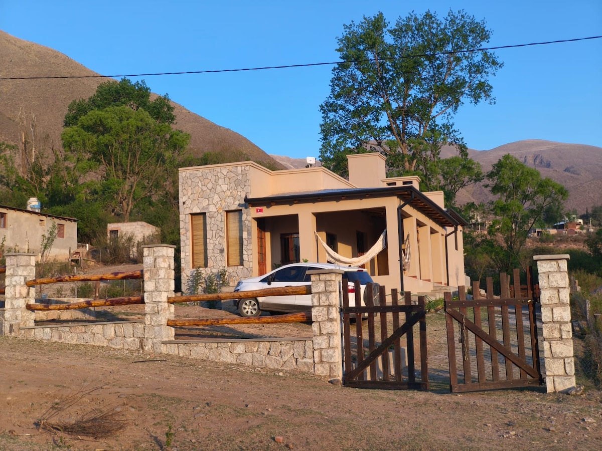 Take it easy at this unique and tranquil getaway. At the foot of the hills, with an incredible view of the valley, surrounded by nature. 10 minutes from downtown Tafi, 10 minutes from La Angostura and El Mollar dams. Fully equipped, comfortable cabin. Attended by its owners.