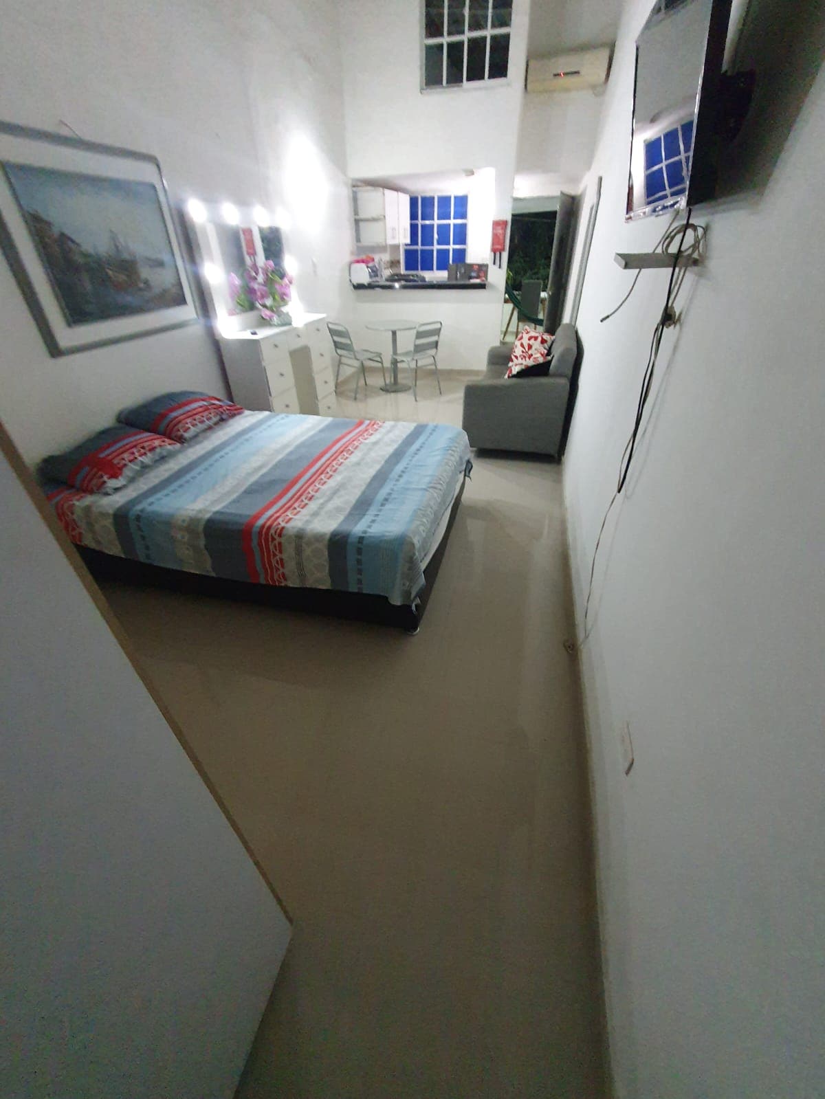 Apartment with a good location, 1 bedroom with a double bed and a single bed, it has a bathroom, terrace (suitable for motorcycles), kitchen with (fridge, stove, dishes, cutlery, pots, soap, salt, etc.) and laundry area. It has air conditioning, a fan, Netflix, and Wi-Fi. Located in a residential and central area of Santa Marta, close to D1, ARA, and Olímpica chain supermarkets. Two blocks away, you can take any bus to the historic center, Tayrona National Park, and the Rodadero.