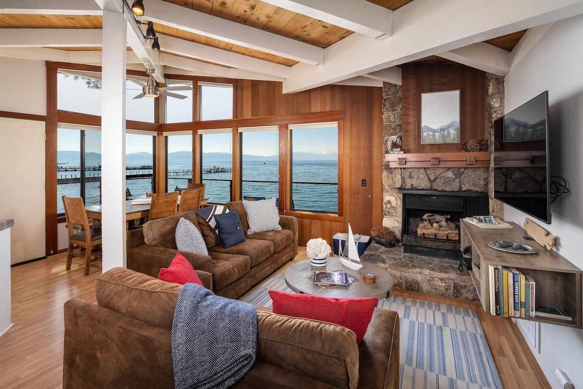 Welcome Our ideal location is in a community right on the lake. We host a modern remodeled condo, with/ heated floors on the main level, and a fireplace. The space sleeps 8. Built-in bunk room & two additional queen bedrooms. Summer months: the grounds offer a beautiful dock to stroll at sunset, tennis courts, a community outdoor grill, and a swimming pool. Excellent internet. Ideal location year-round to enjoy the beauty of the lake. We are walkable to Tahoe City. Reach out with ?'s
