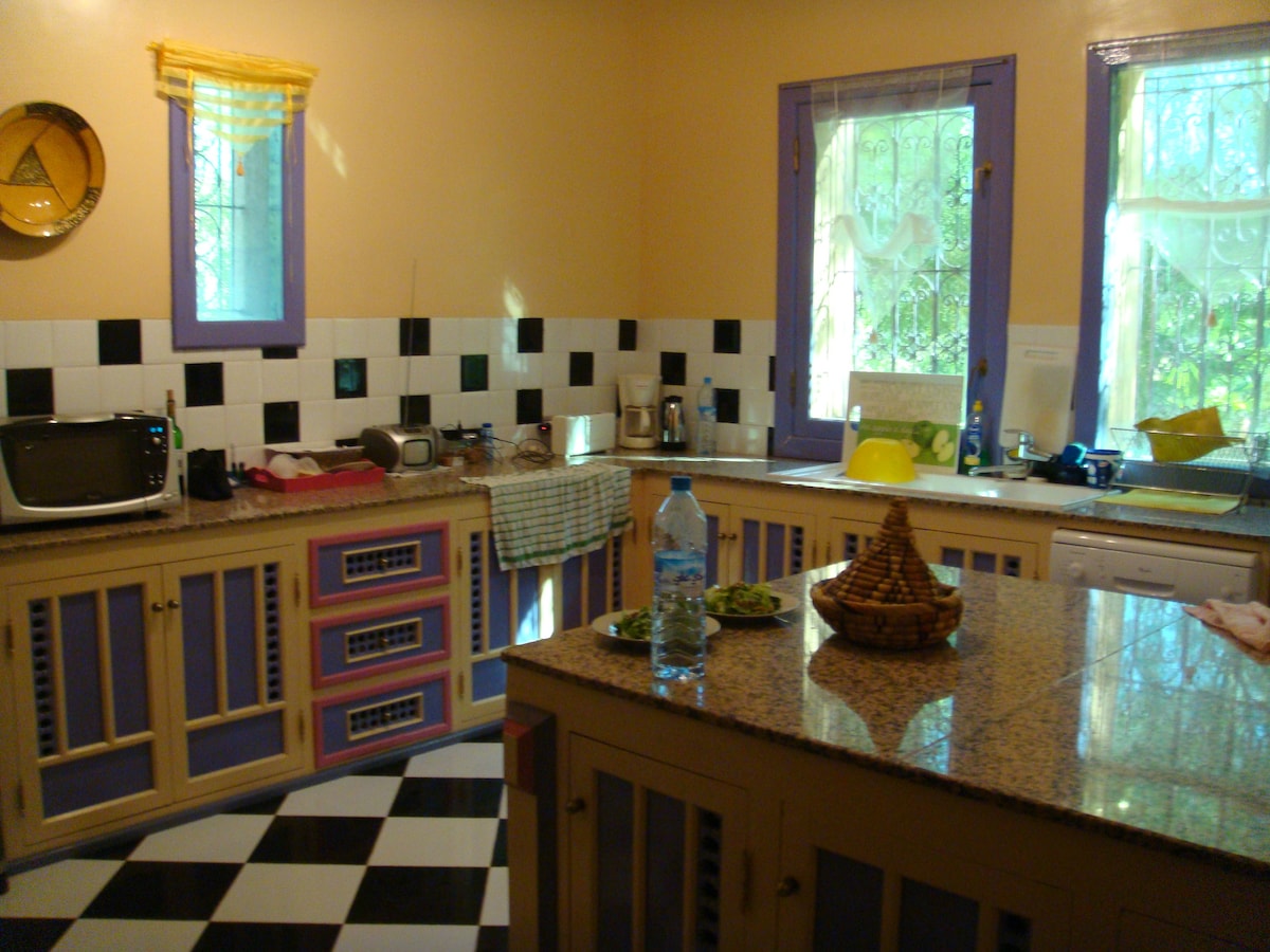 The villa is close to Ouarzazate, the exceptional view of the lake and the often snow-covered Atlas Mountains. You will appreciate the place for the splendor of the house (540 m2) and its garden (4000 m2), its comfort, the calm of the place, the proximity of the lake and the Atlas Mountains, the hospitality of Jalil, the cooking of Hafida and the service of Fatima. Perfect for couples, business travelers, families (with children), big groups and furry friends.