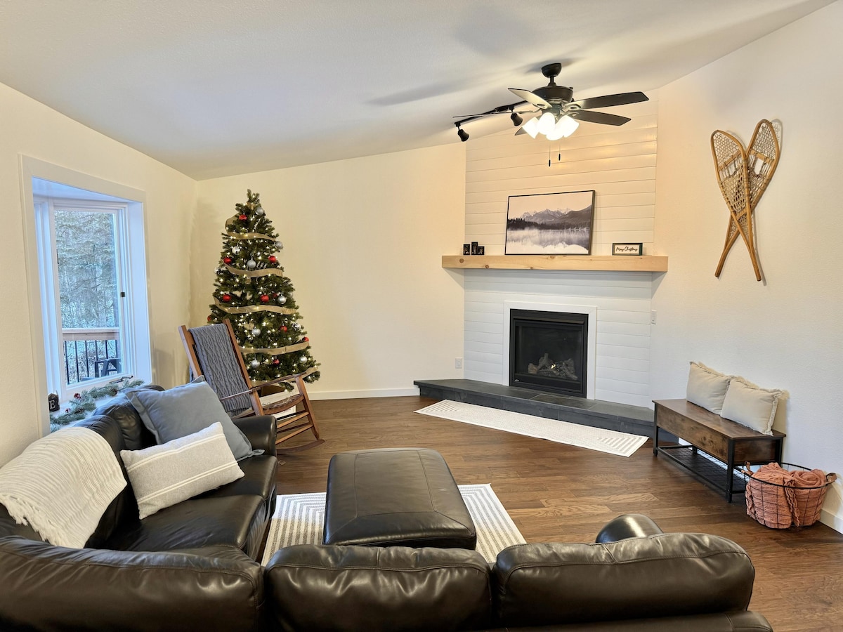 This newly constructed modern A-Frame offers a unique and luxurious accommodation opportunity. It features a comfortable king bed with crisp linens, keyless entry, washer & dryer, gas fireplace, TV, WiFi, hot tub, and large windows so you can soak up beautiful Alaskan views while surrounded by a tranquil forest. The kitchen and bathroom are stocked with everything you need to feel right at home. Enjoy the cozy and comfortable atmosphere during your private escape.