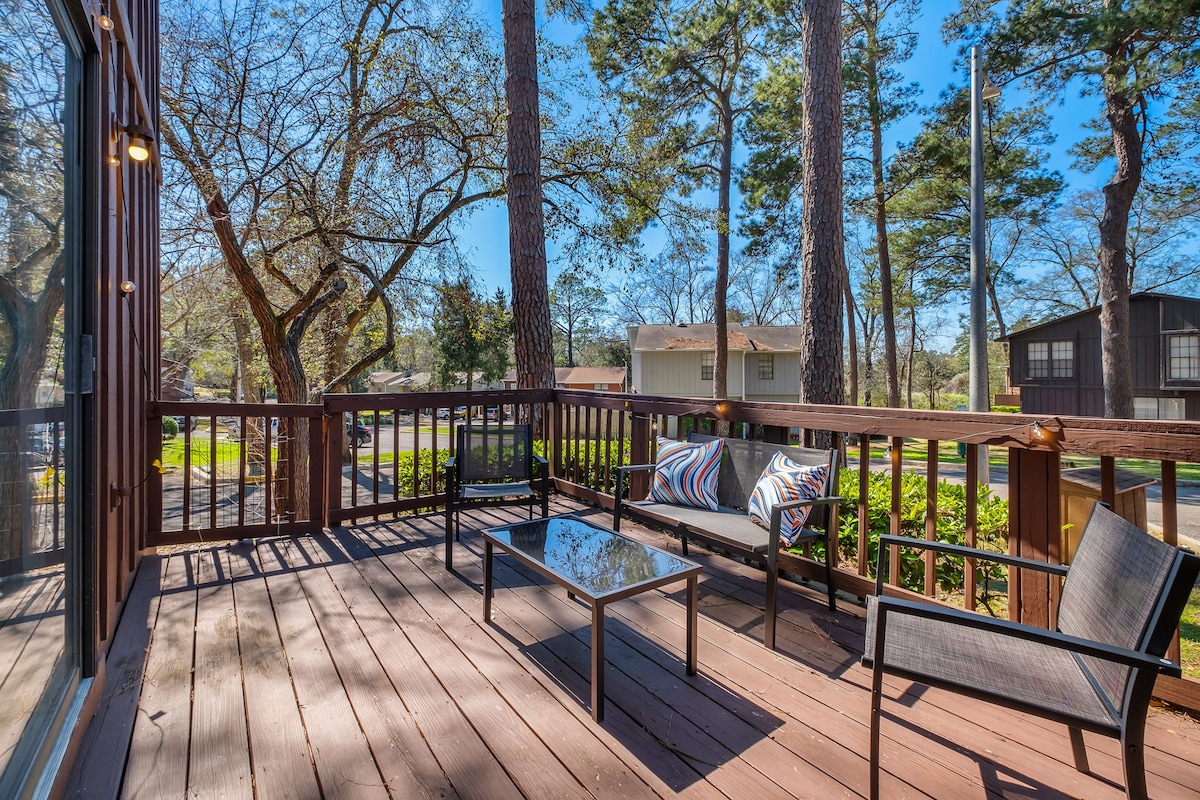 A short 2 mile drive from I-10 for those traveling you can unwind at this garage-loft with private entrance surrounded by trees with a backyard oasis. ✨ Step inside to a modern main room with canopy bed and well-equipped kitchen. Find your haven in comfy bedrooms and soak up the sunshine on the expansive deck☀️ Splash in the sparkling pool, have water gun fights in the yard and have dinner in the poolside pergola! Minutes from downtown, museums, and natural attractions.