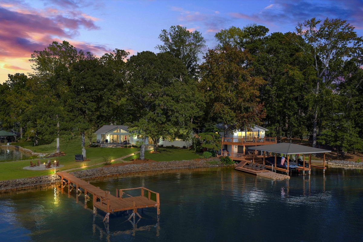 Located on the Montgomery Side, this amazing Lake House sits on a flat lot offers 450 feet of water front. It is very private. There are many outdoor areas like the gazebo, two docks, fire pit, and a floating dock. You'll love the coziness of the large fireplace and the open floor plan with high ceilings. You're 5 minutes from Children's Harbor and 10 minutes from Catherine's Market and The Springhouse. Make sure to make a reservation for Springhouse.