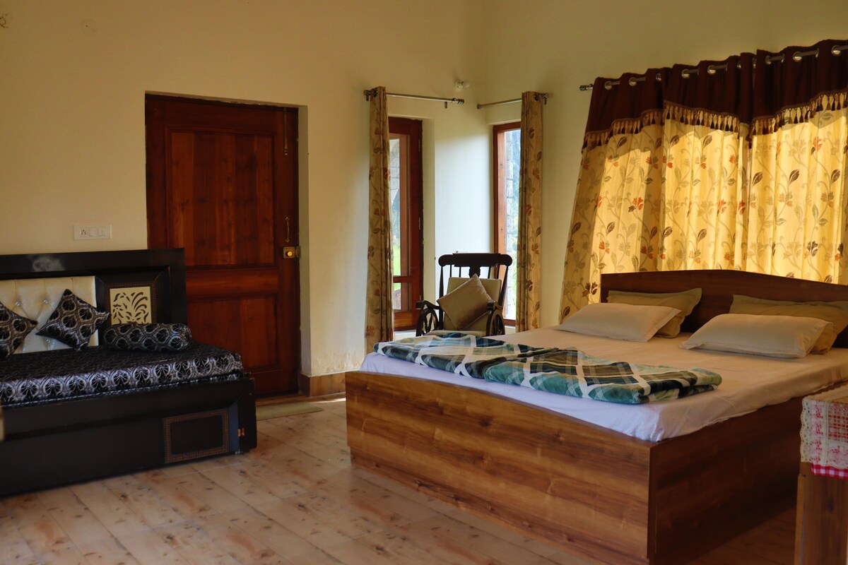 Stay in a cozy cottage at Shraddha Suman Farms, set in the quiet hills of Himachal. You’ll be surrounded by herbs, gardens, and open fields — the perfect place to slow down and enjoy nature. Enjoy fresh, homegrown meals, peaceful mornings, and clear starry nights. The cottage is simple but comfortable, with everything you need for a restful stay. Perfect for those seeking peace, simplicity and connection.