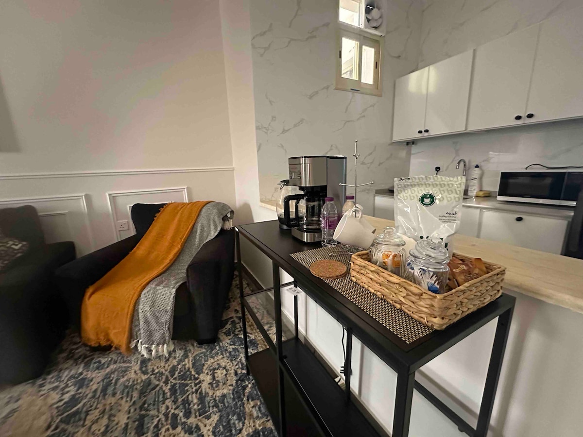 أهلاً وسهلاً.. -المساحة عملية ومجهزة بكل الأساسيات: جلسه هادئه بتلفاز ذكي، WIFI مجاني، غرفة نوم مع سرير فندقي مريح، مطبخ صغير يحتوي على الأدوات الضرورية، ودورة مياه. -التصميم بسيط ومرتب، ويوفر جوًا يساعد على الإسترخاء بعد يوم من التجول أو العمل. -الموقع يسهل الوصول منه إلى أماكن مهمة في المدينة، سواء كنت تزور بغرض العمل أو السياحة. -يمنع التدخين وإقامة الحفلات ❌ أحرص دائمًا على أن تكون الإقامه مريحه✨ لا تتردد بتقديم أي إستفسارات🤍
