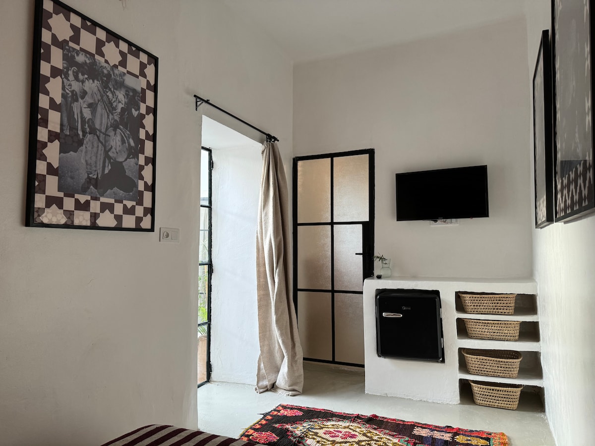Welcome to my handcrafted studio in the heart of Tamraght — designed with love and the spirit of my hometown. Every detail reflects Moroccan craftsmanship, offering you a warm, peaceful retreat. Just steps from local shops, markets, hanout, and cafés, the location is both convenient and quiet. Free street parking is available outside. Enjoy the cozy chill-out corner, perfect for coffee or tea. Whether you’re here to surf, relax, or explore, this space feels like home.