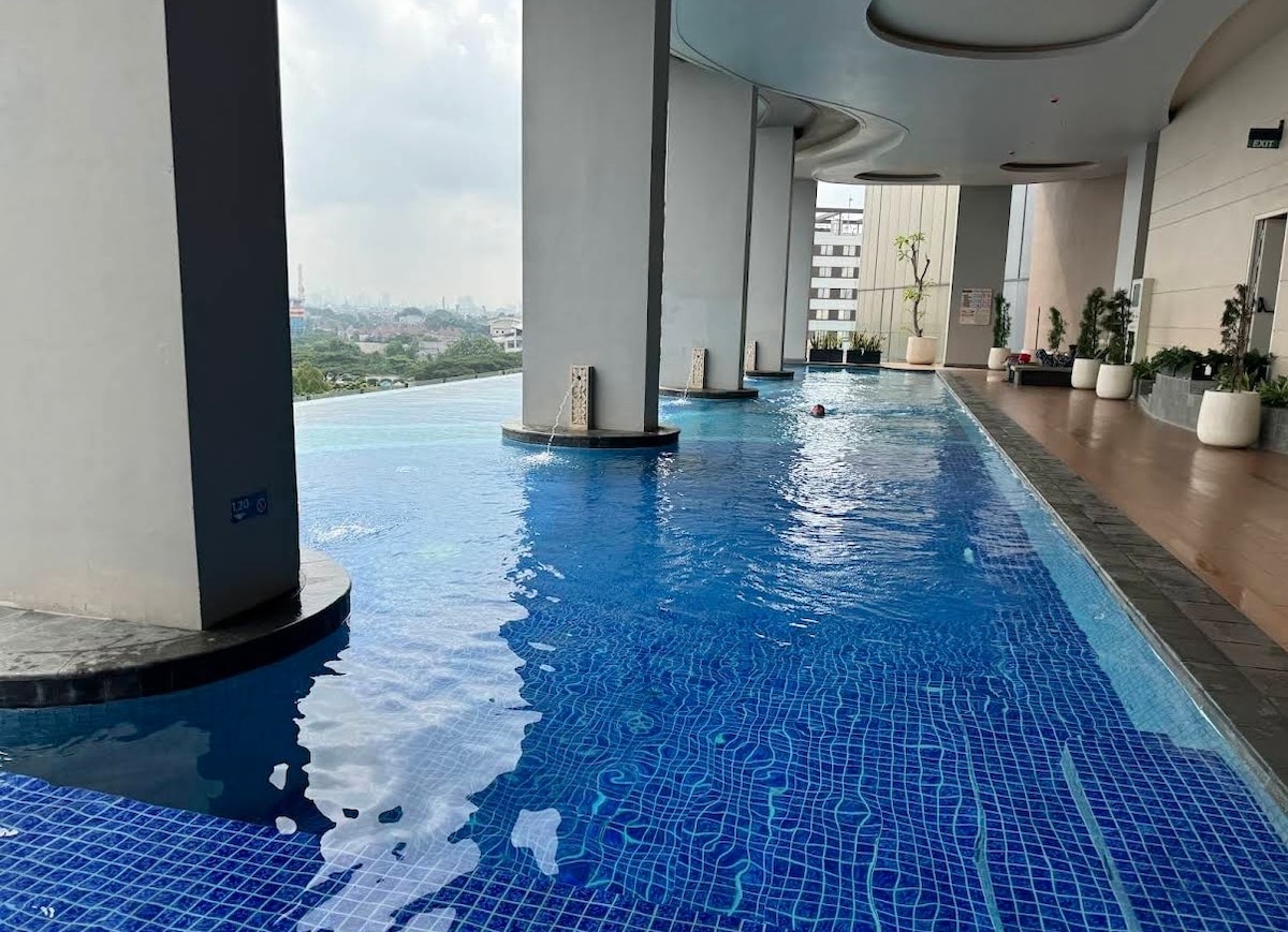 A spacious, cozy 1-bedroom apartment with a living room and balcony at Citralake Suites, West Jakarta's ideal lakeside getaway. Conveniently located just minutes from the Airport, PIK, Puri Indah and Sunset Avenue, it’s easy to explore the city. Step outside and you’re just a 1-min walk from Ciffest, a lively dining area with plenty of food options, supermarkets and ATMs. Our 1 BR unit provides a luxurious and comfortable space for up to 3 guests, with a kitchenette, Free Wi-Fi, and Netflix.