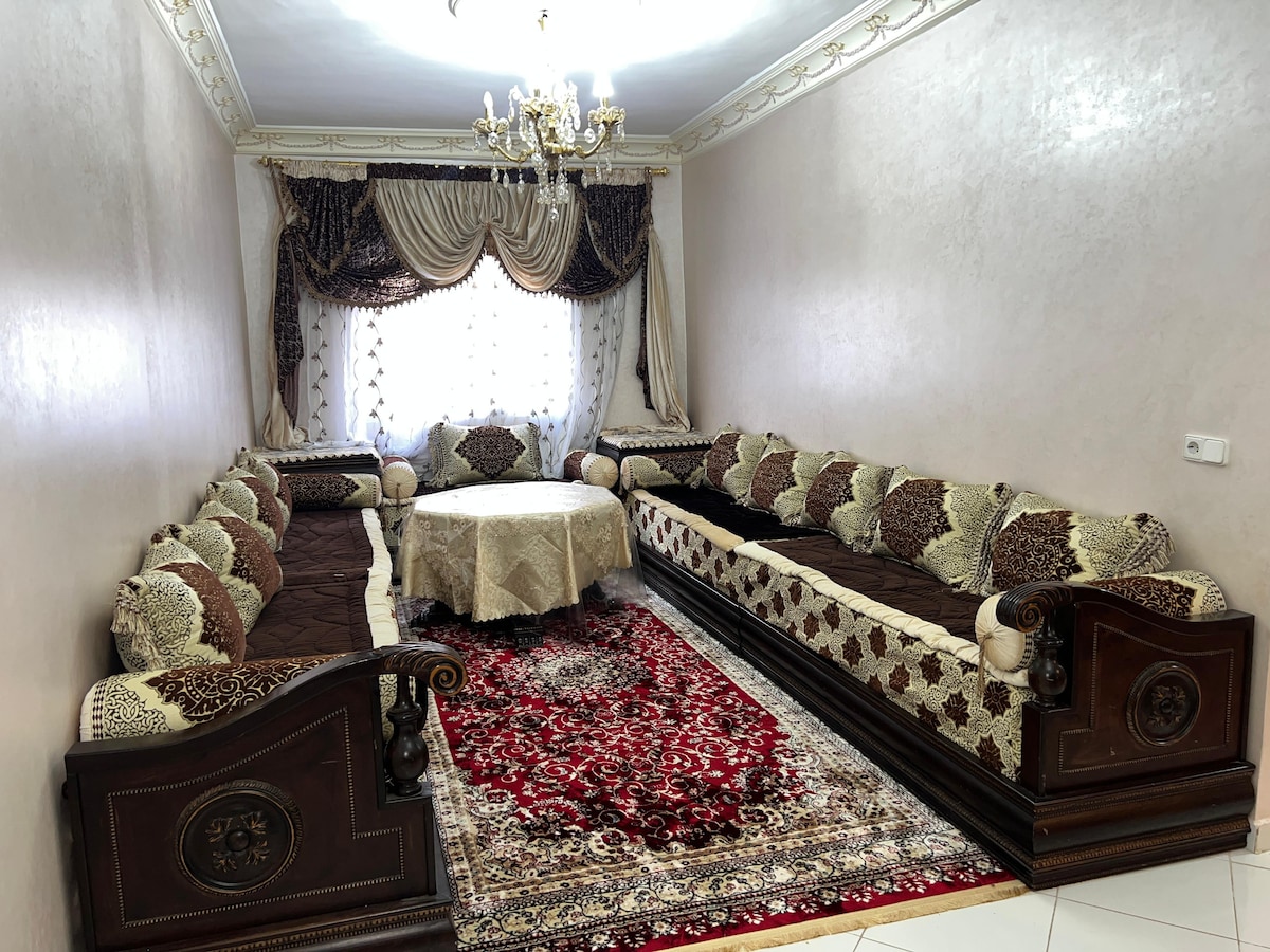 Welcome to this beautiful apartment ideally located in Tangier, on the 1st floor of a quiet building, not overlooked. The space includes 2 comfortable bedrooms, a fully-equipped kitchen, a bright living room, a balcony and a large terrace to fully enjoy your moments of relaxation. * A few minutes' walk from Perdicaris Park (Rmilat), the lake and beautiful green spaces Perfect for families, couples or travelers looking for tranquility while staying close to amenities.