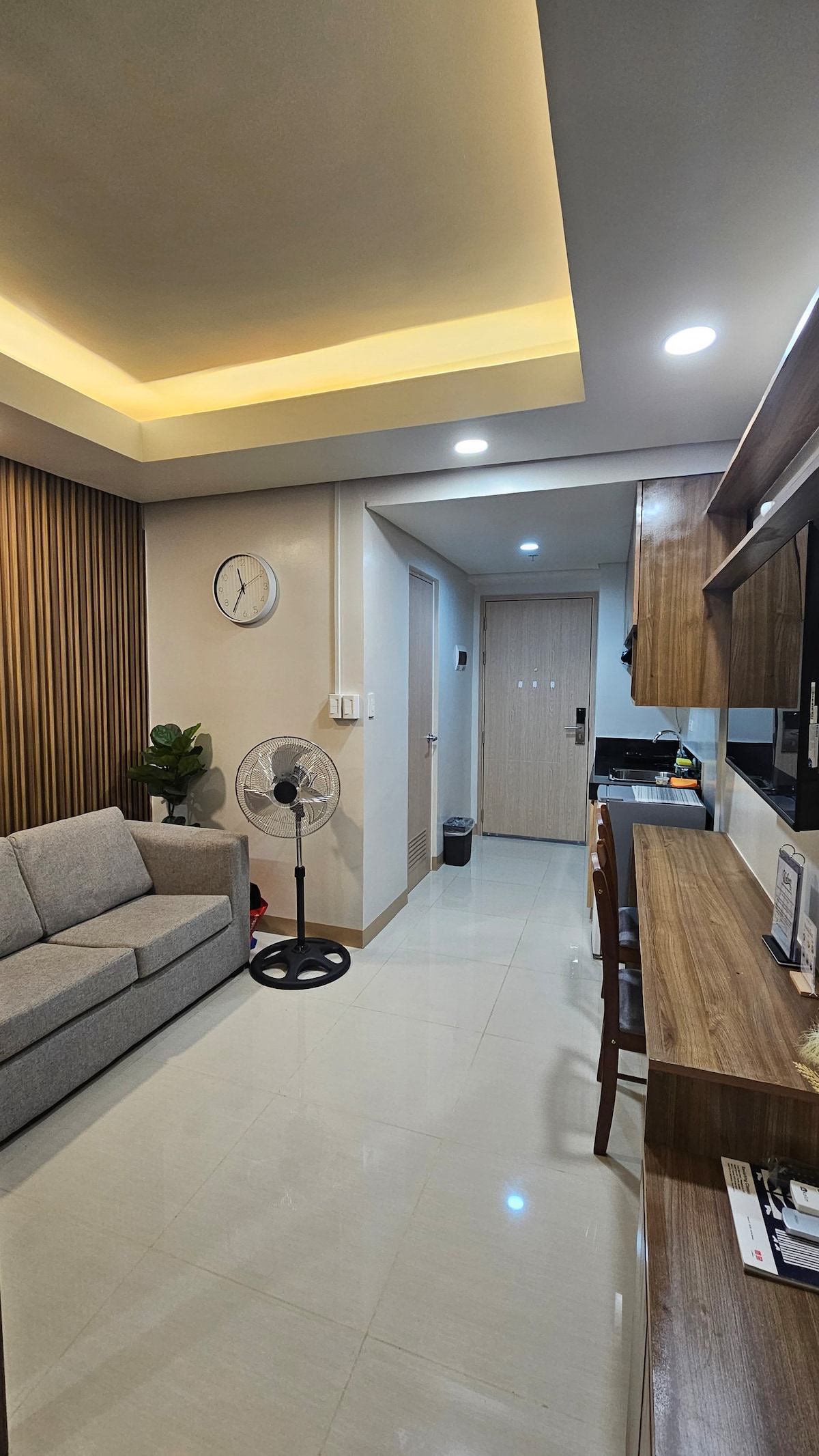 Welcome to Serene Stay—a modern, stylish condo right beside SM City Iloilo. 🌿 Designed with clean lines, warm lighting, and cozy elegance, this space features a glass-partitioned bedroom, plush beddings, and a fully equipped kitchen. Perfect for work or leisure, with dining space, relaxing sofa, and hotel-like comforts all in one chic retreat. 🏙️