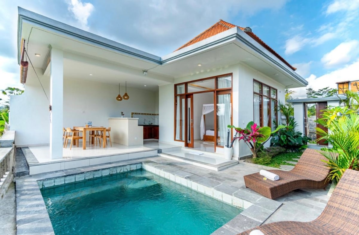 Ana Private Villa offers private swimming pool and outstanding rice fields view. Featuring luxurious bedding, private kitchen including all the utensils, ensuite bathrooms with terazzo polish to finish the space perfectly. Located it's just about 10 minutes drive (approximately 5KM) from Ubud centre which is the perfect distance out of town to find peace yet still access all of Ubud's amenities.