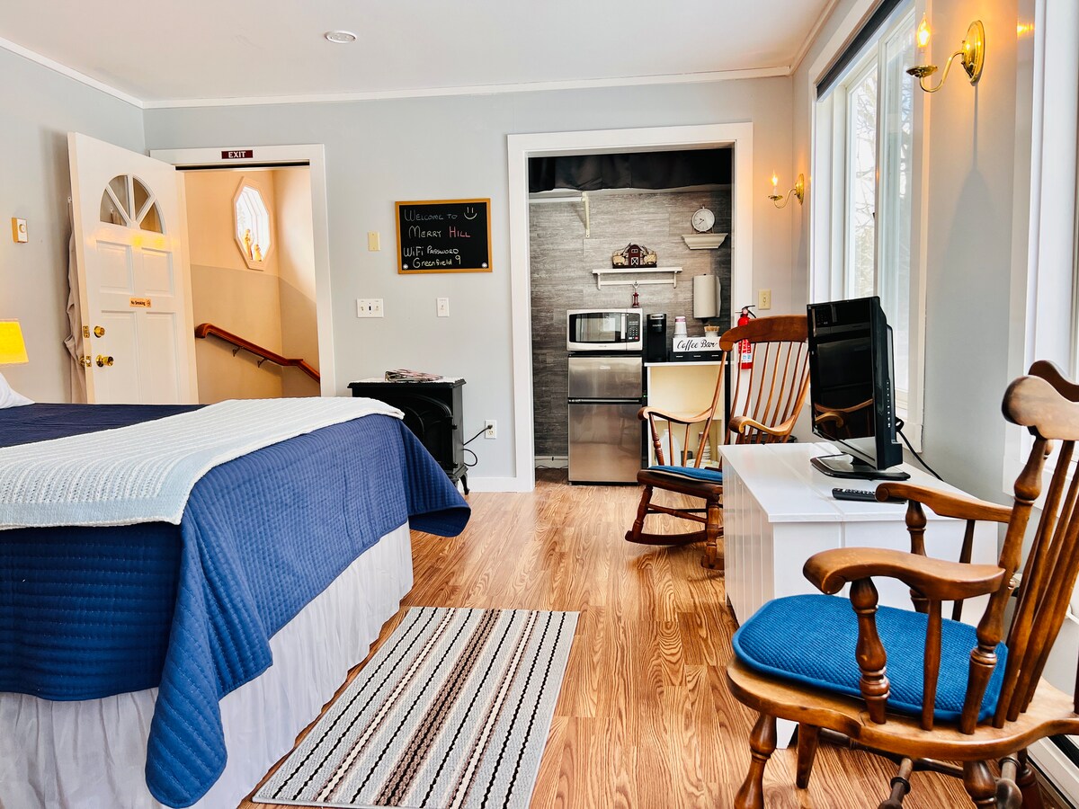 Take a break and unwind at Merry Hill - a peaceful wooded oasis. Merry Hill is located in Greenfield, NH about 10 minutes away from Crotched Mountain for skiing and hiking. We are mid-point between Keene and Manchester. Your private, separate entrance guest suite includes: • Queen Bed with 14” Memory Foam Mattress • Full Bathroom with Tub and Shower • Complimentary Shampoo, Conditioner & Body Wash • Mini-Fridge with Coffee / Tea Station