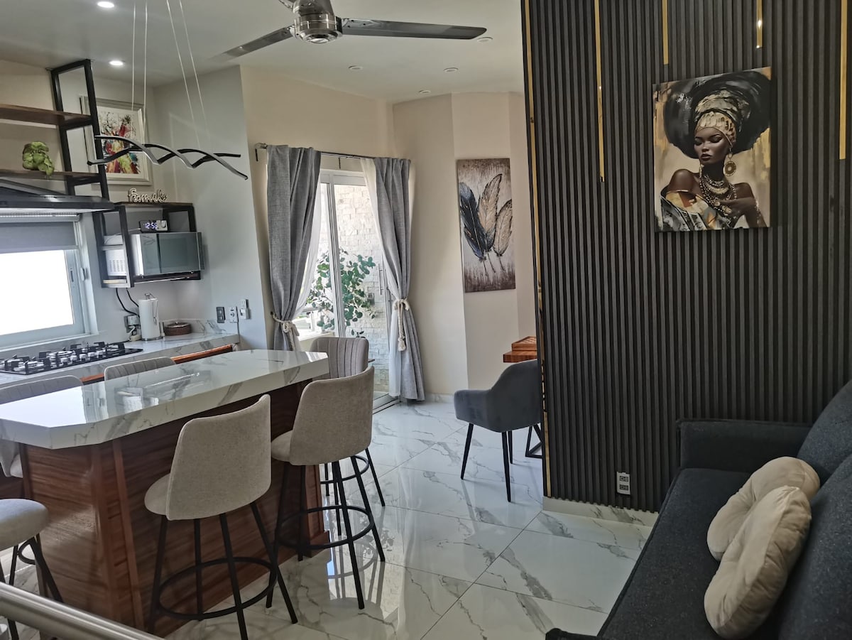 New apartment, fully equipped with furniture and all new accessories, excellent location. It has all the comforts and amenities necessary to make your stay more pleasant with high-speed Internet, air conditioning in all areas and smart TV with Megacable included in all rooms, among other things.