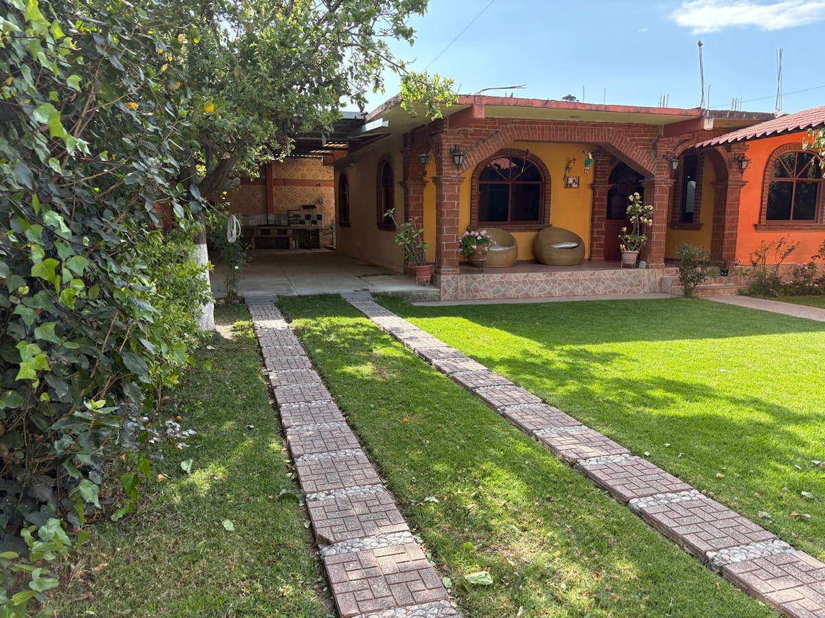 Our house is ideal for disconnecting from the hustle and bustle of Mexico city. It's located in a quiet, safe, and historic rural area. By car, you're 10 minutes from Molino de Flores National Park, the Baths of King Nezahualcóyotl, and downtown Texcoco. It's only 30 minutes away from the Teotihuacán pyramids, and 40 minutes from Mexico City.