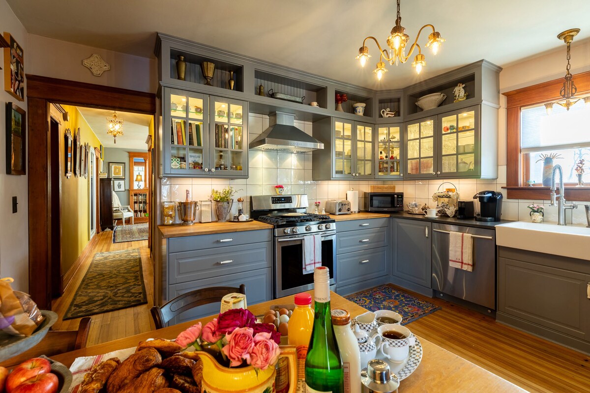 Tucked inside a beautifully restored Carriage House the spacious Studio offers a peaceful light filled retreat with timeless, charm and thoughtful comforts . Hotel quality linens , sitting area and a calming pallet of neutrals and blues for a truly restful stay. Exceptional privacy. Easy access to Nearby attractions, dinng & culture This is a ground level queen studio, a “Private Entrance “W/ Keypad ,steps free Off street parking ,lg closet private bathroom , well equipped kitchenette