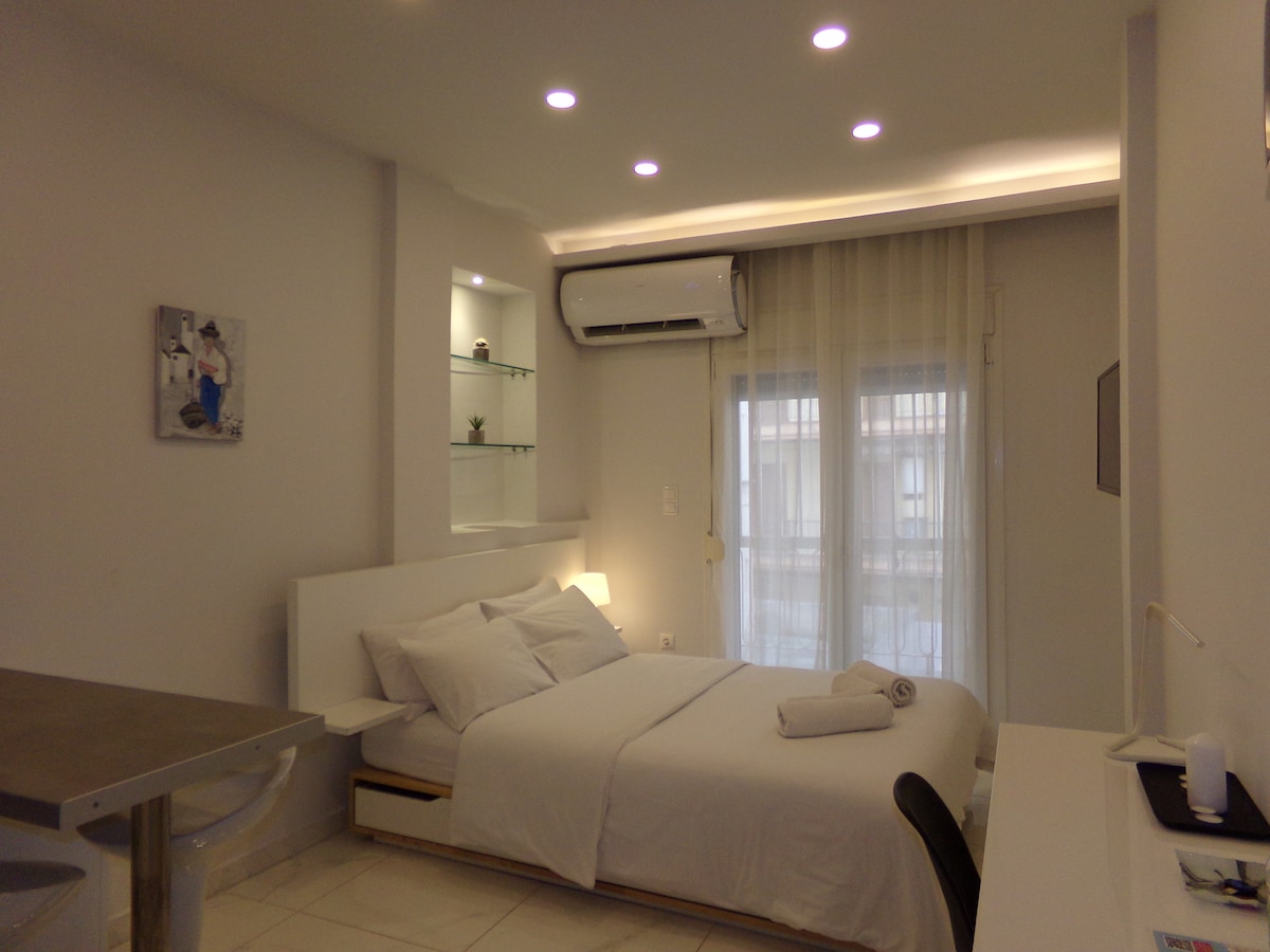 Brand new studio with modern decoration featuring a unique queen bed and intricate false ceiling designs (38 m²). The studio is located at the center of the town and is under 10 mins from the airport and many shopping malls. With a 3 min walk you can see the town’s square and in 10 you can be at Thermi's dam. If you feel like swimming you can visit Halkidiki in 30 mins.