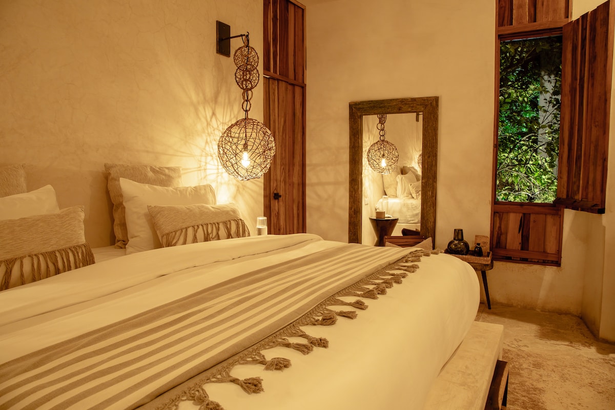 Disconnect from your worries in this spacious and serene space, surrounded by a beautiful garden with fruit trees, a pool and a safe and harmonious environment with nature. The location allows you to have all the amenities plus beaches, cenotes, Mayan culture, archaeological areas and nature reserves less than an hour away.