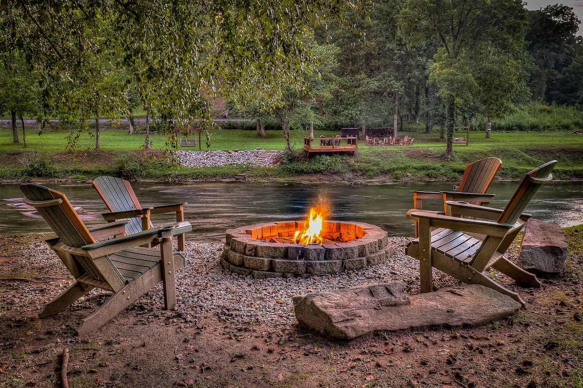 ⭐ Top 1% of Airbnb Homes “One of the best Airbnbs I’ve ever stayed in—and THE nicest in Blue Ridge.” – Scott Wake up to the sound of rushing water. Sip coffee on a swing just feet from the river. End your nights around a fire with the mountains wrapped in silence. TROUT "N" ABOUT is a premier RIVERFRONT CABIN DIRECTLY ON THE TOCCOA RIVER, designed for guests who want both PEACEFUL SECLUSION and UPSCALE COMFORT—just 8.5 MILES FROM DOWNTOWN BLUE RIDGE, with ALL PAVED ACCESS.