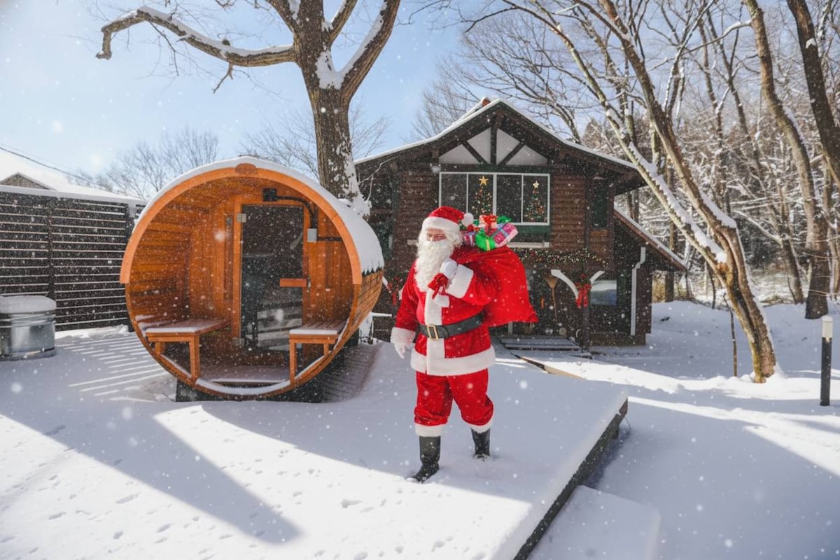 12月19日~25日限定!(除く21日)クリスマスの夜にフィンランド公認サンタがやってくる。写真撮影やハグも。大切なパートナーやご家族、お友達を驚かせてみませんか? 最大15名収容の那須の森と小川に囲まれたおしゃれなログハウス「MANA」 清流のせせらぎと小鳥のさえずりで目覚め、夜はサウナで整い星空を眺めてから眠りにつく。ウッドデッキにバレルサウナやリクライニングのトトノウチェアも全部貸切! 那須の観光名所やレストランの情報提供等、サポート致します。WIFI 10Gbps導入済。英語対応可能 気の置けない仲間同士でのサウナ&BBQを楽しむワーケーション、ご夫婦やご家族のグランピング、友人同士でのスノボ、スキーやゴルフ旅行、会社の合宿など使い方は様々! IHコンロ、冷蔵庫、エスプレッソマシンに食器や調理器具は全て揃っています。食器洗い乾燥機、洗濯機、乾燥機も完備。 サウナ後に最適な露天風呂がある金ちゃん温泉まで徒歩3分。那須で一番有名なパン屋さん、ペニーレインも徒歩圏。クロワッサンを買って来て豆から淹れたコーヒーと一緒に優雅な朝食。サファリパークや名湯鹿の湯も車で10分圏内。