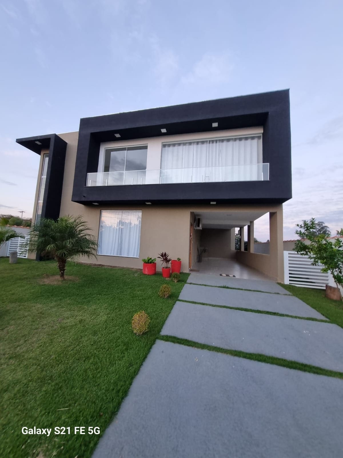 Casa nova , possui 05 banheiros com chuveiro sendo 03 suítes mais um lavabo. Todos os quartos contam com ar condicionado , smart Tv de 50 polegadas, 1 cama Queen e um Sofá cama de casal A casa está localizada em condomínio fechado , possui um lago para pesca esportiva, ruas tranquilas para andar de bicicleta e segurança 24 horas .
