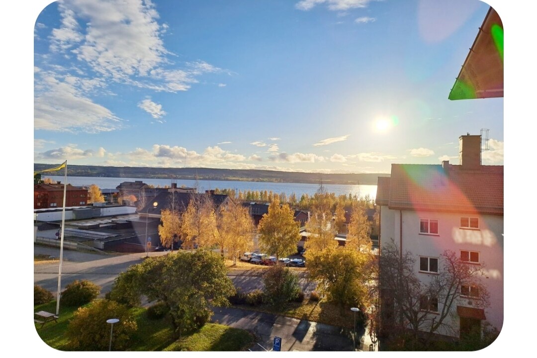 Lägenhet med fantastisk utsikt över sjön och centrala Östersund. Lägenheten är smakfullt inredd i skandinavisk stil med ljusa färger. Här finns stora fönster med sittplatser där man kan vila blicken över Storsjön, se solnedgången eller spana över Östersunds stadsvy. Lägenheten har alla bekvämligheter du behöver. Från lägenheten är det nära till sjön och skogen med fina promenadstigar. Du tar dig centrala Östersund bäst med bil, det ca 10 minuter.