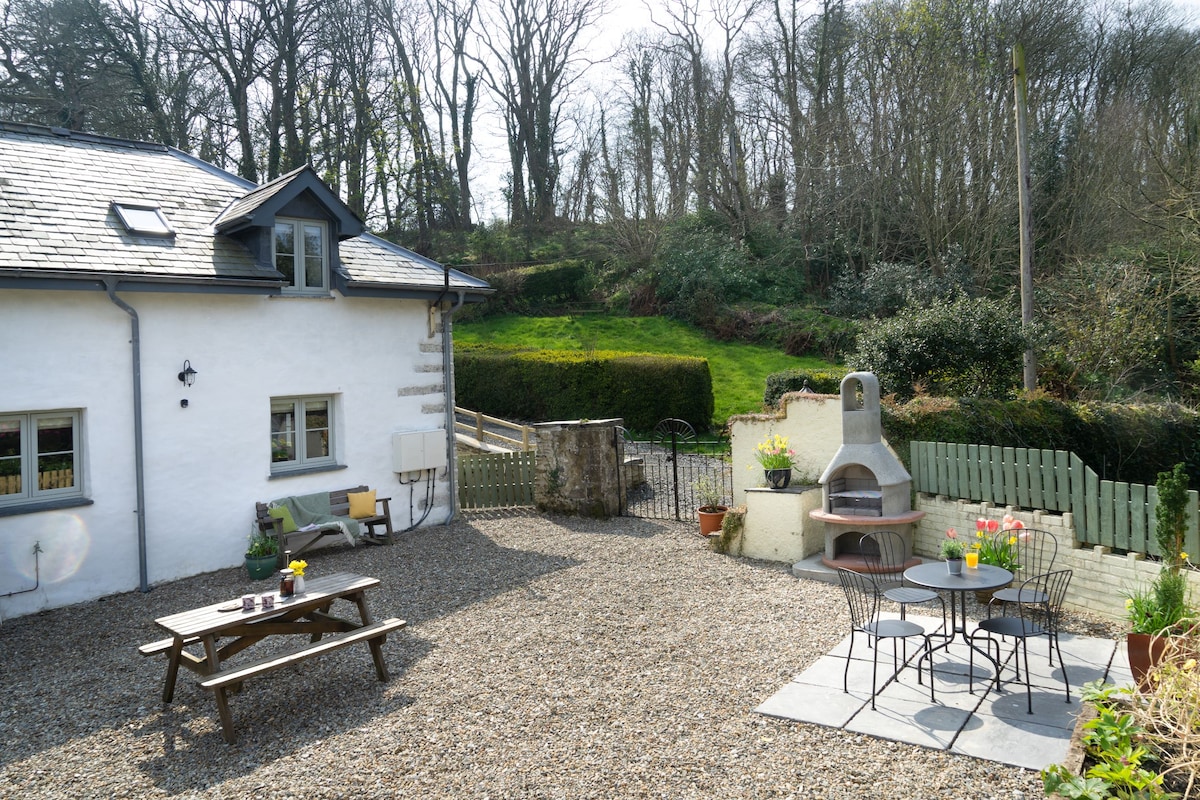104 FIVE STAR REVIEWS 🙏 Lovely Detached and secluded Old Welsh Cottage😊 Beautiful Gardens ❤️ All on its own Up to 3 Dogs 😊 Free Sheep/Dog Proof Fencing, Enclosed large Grounds Perfect for your Winter Bobble Hat Getaway☺️Adventurous Summer Holiday 😎 Backs onto Ancient Woodland Within easy reach of local Beaches and The Coastal Path. Cosy evenings indoors by a Roaring Log Burner Two Baskets of Wood Included Also Outdoor Log Burner and Barbecue Perfect 😍