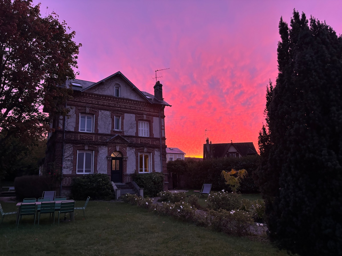 Beautiful, comfortable estate, ideal for family vacations or for a weekend with friends (fiber optic) Quietly located in the heights of Deauville, close to the beach, racecourse, train station and golf course. Ideal for getting around quickly. Large wooded and equipped garden will delight you with its stunning views of the Sea/Deauville, its heated pool (closing on 10/13), its terraces as well as its equipped games room. No neighbors except horses 🐎