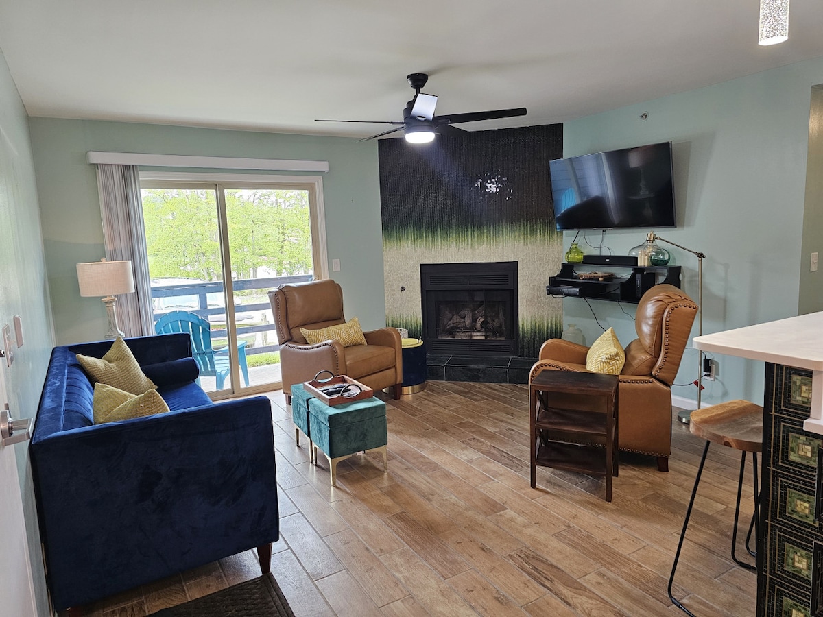 Newly renovated ground-floor condo just steps from Timberline Mountain! Features a king bed in the main bedroom and a twin-over-full bunk in the second. Enjoy a full kitchen, cozy fireplace, and bold mountain style. Perfect for skiing, hiking, or biking adventures—then relax in comfort after a day outdoors. The ideal Canaan Valley retreat, right from your front door!