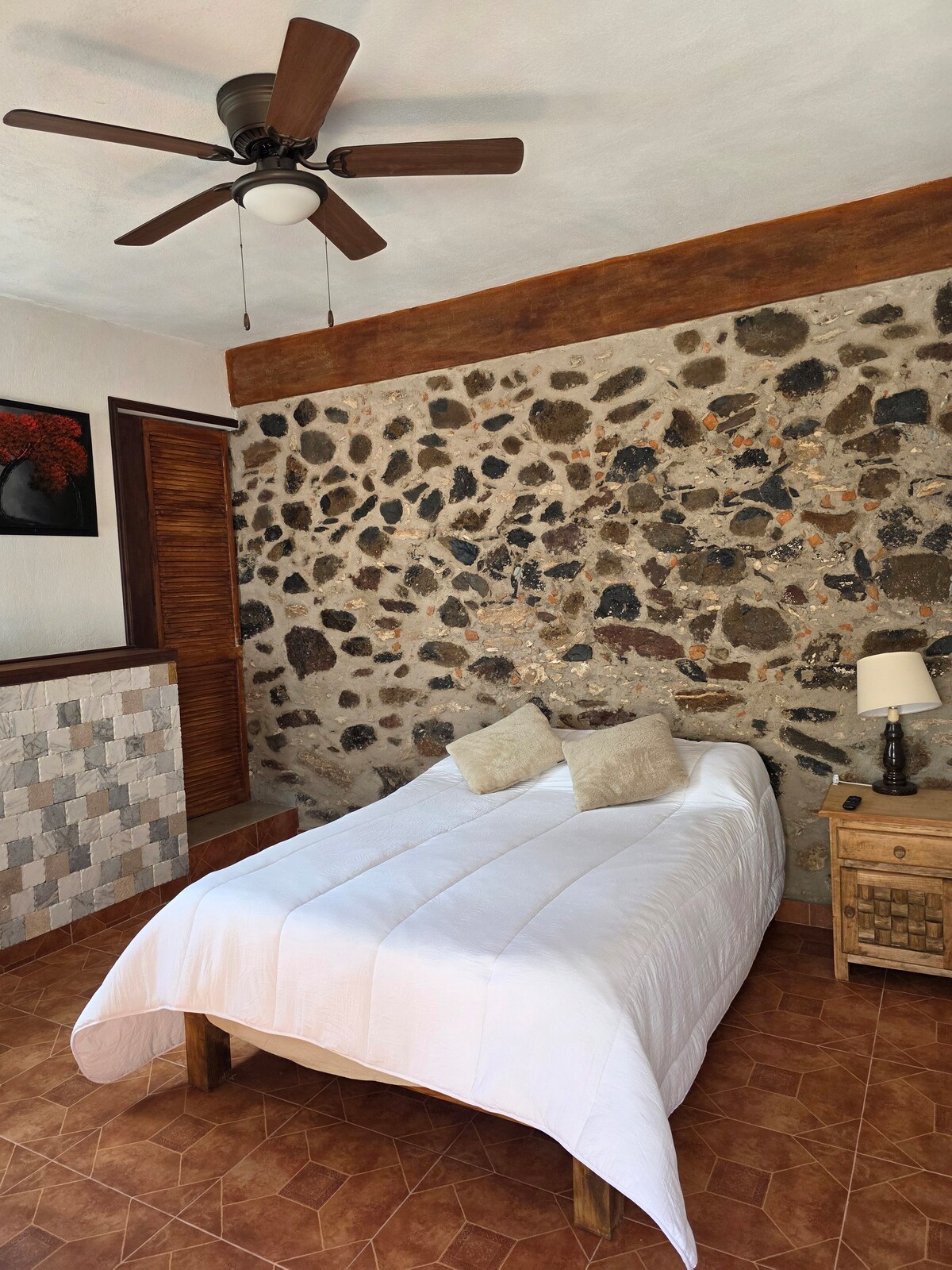 Casa de 525 m² con vista a la presa, ideal para familia y amigos en grupos grandes de hasta 18 personas. 5 habitaciones, 4 con baño propio, y 2 medios baños. Disfruta de un jacuzzi para 8, asadores, camastros, comedor interior y exterior y cocina equipada con lo necesario. La limpieza diaria se puede solicitar, junto con personal para preparar desayunos, comidas y cenas. Ademas contamos con un salon de fiestas. Además, contamos con un salón de fiestas para 90 personas y estacionamiento seguro