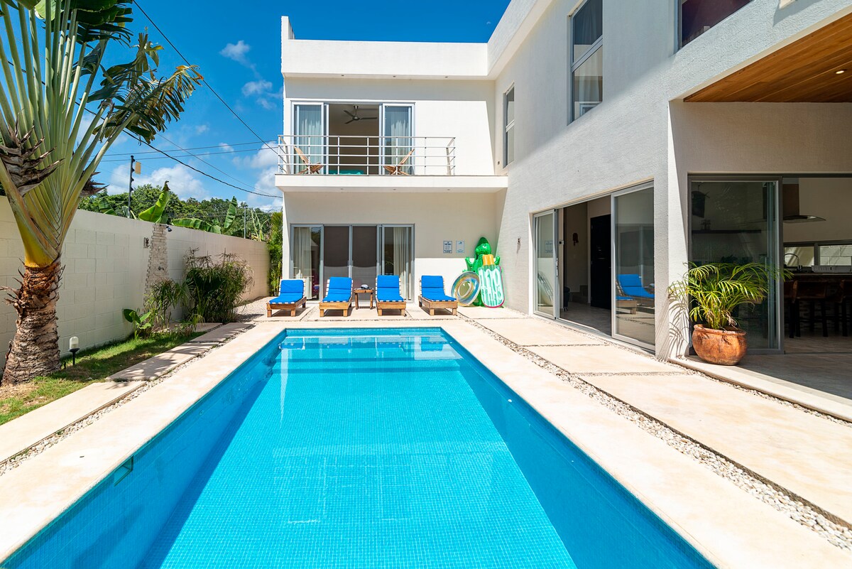 Home is located in LA Veleta. 7 minutes from downtown & 15 from beach We are committed to cleanliness and sterilization during these difficult times, rest assured that we have cleaned home from top to bottom, to ensure your safety!!! This quaint bohemian sheik home is 5 minutes from town and nestled in Mayan jungle views from upstairs pergola. Home is exclusively for your group, with private pool, 4 free bikes that come with home.