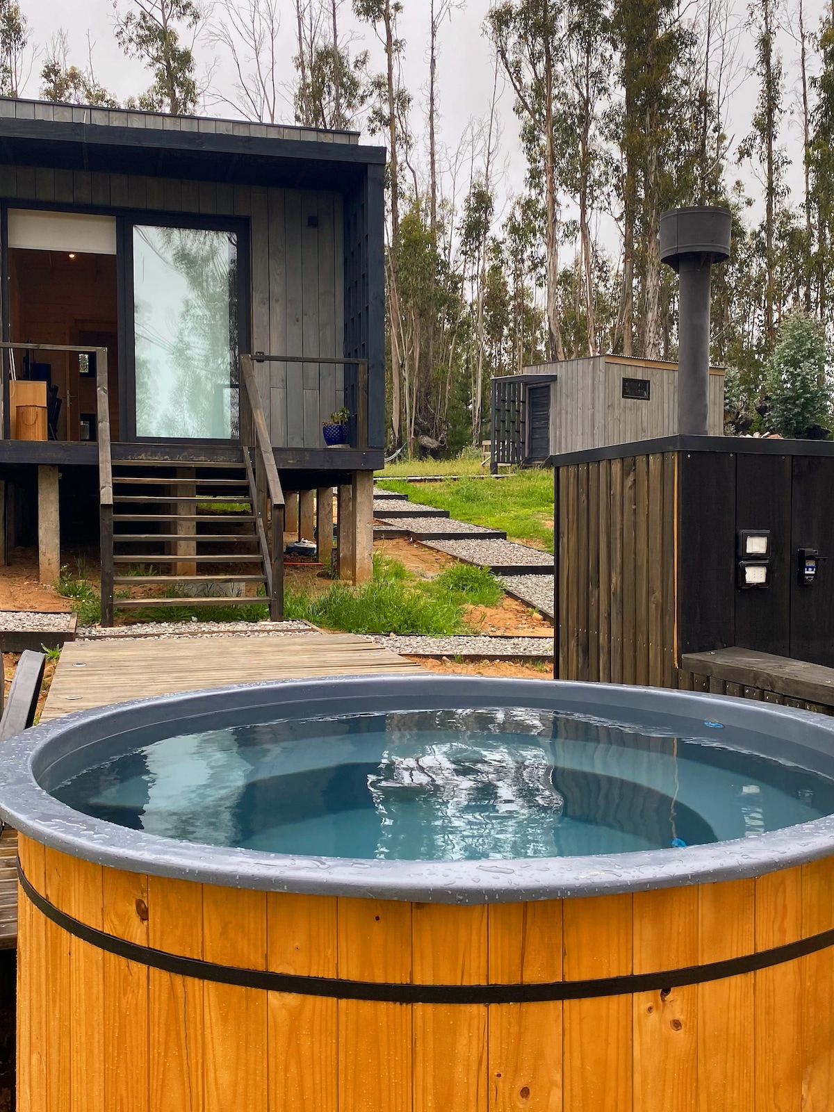 Cozy refuge with a unique tiny house design (24m2), inserted in a native ravine with spectacular views of the valleys where you can see a great variety of birds. Ideal for getting away from the city and taking refuge from the coastal wind. Large terrace with outdoor hot tub and cold water shower. Very close to Matanza and Pupuya beaches. (1 queen bed + children's bed) . 4x4 is recommended for rainy days - 4.5 km from Matanzas - 3.5 km from La Vega - 24 km from Puertecillo