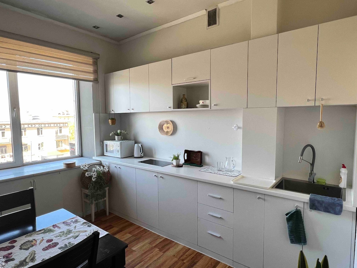 - Stay in the heart of UB. Walk to nearly all major attractions, shops, and restaurants. - Just 5 minutes from the Chingis Khan Museum and 13 minutes from Sukhbaatar Square and the Parliament building. · Sunny, peaceful 1-bedroom apartment filled with plants · King-size bed, fast Wi-Fi & cable TV · Fully equipped kitchen+cozy coffee station 🪴 Breathe easy in this fresh, green oasis. Looking forward to hosting you! Lulu