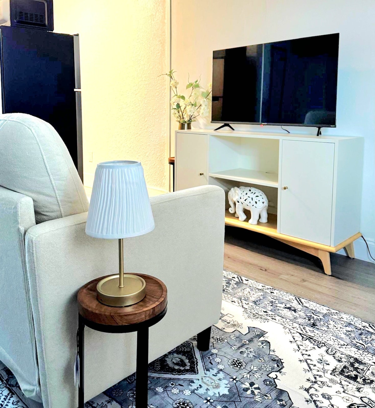 This newly renovated studio is perfect for quick comfortable stay but has all the essentials for a extended visit. You have your own private oasis w/ private patio to relax. Located in east Orlando, this beautiful studio is minutes away from the UCF College and downtown and within 30 minutes from all major theme parks. This studio has a comfortable memory foam mattress and beautiful bathroom w/ rain shower. There is also a 65" smart TV & a kitchen uniquely designed with light cooking needs