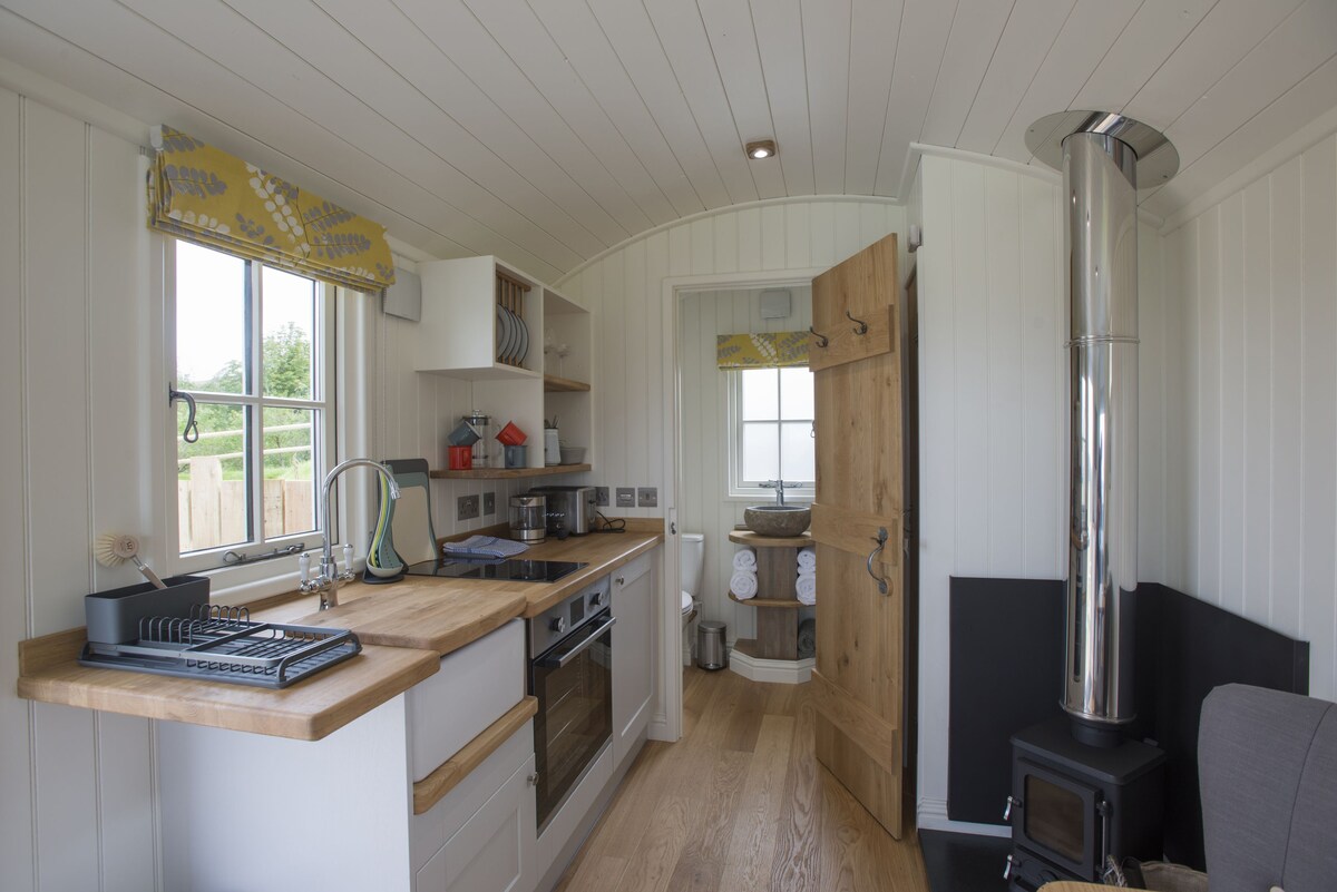 Here is our new well kitted out Pod.It has underfloor heating,hot water,two ring induction hob,fridge/freezer,kettle,toaster,fixed double bed,and sofa bed.For your comfort it has toilet,wash hand basin and shower.Also WiFi,alexa, tv/dvd,amazon fire stick (netflix/childrens tv etc).It is very comfortable and cosy, with super soft fluffy fleece bedding and a pure wool duvet. It also has a bbq area with seating and fire pit for chilled out evenings. The pod is at the end of a quiet village.