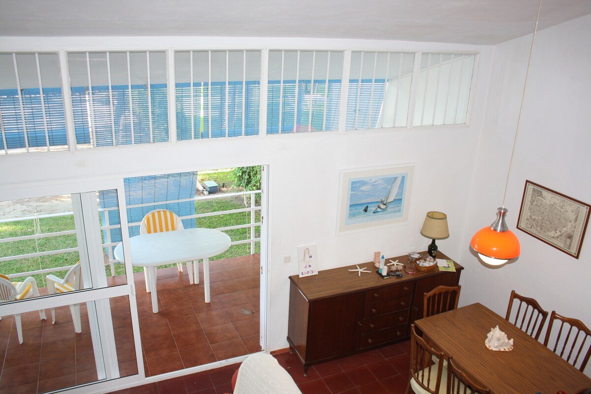 Two-storey house on the beachfront less than a minute from the sea, 3 bedrooms are NOT large, renovated bathrooms and kitchen, air conditioning on both floors. Very cozy, comfortable, quiet area, 5 minutes from a shopping center with cinema restaurants, supermarkets and pharmacy. Everything can be done walking. plaza garage number 37, Bajada a la playa direct. Sailing School and Golf Course Tickets at 3 departures at 11