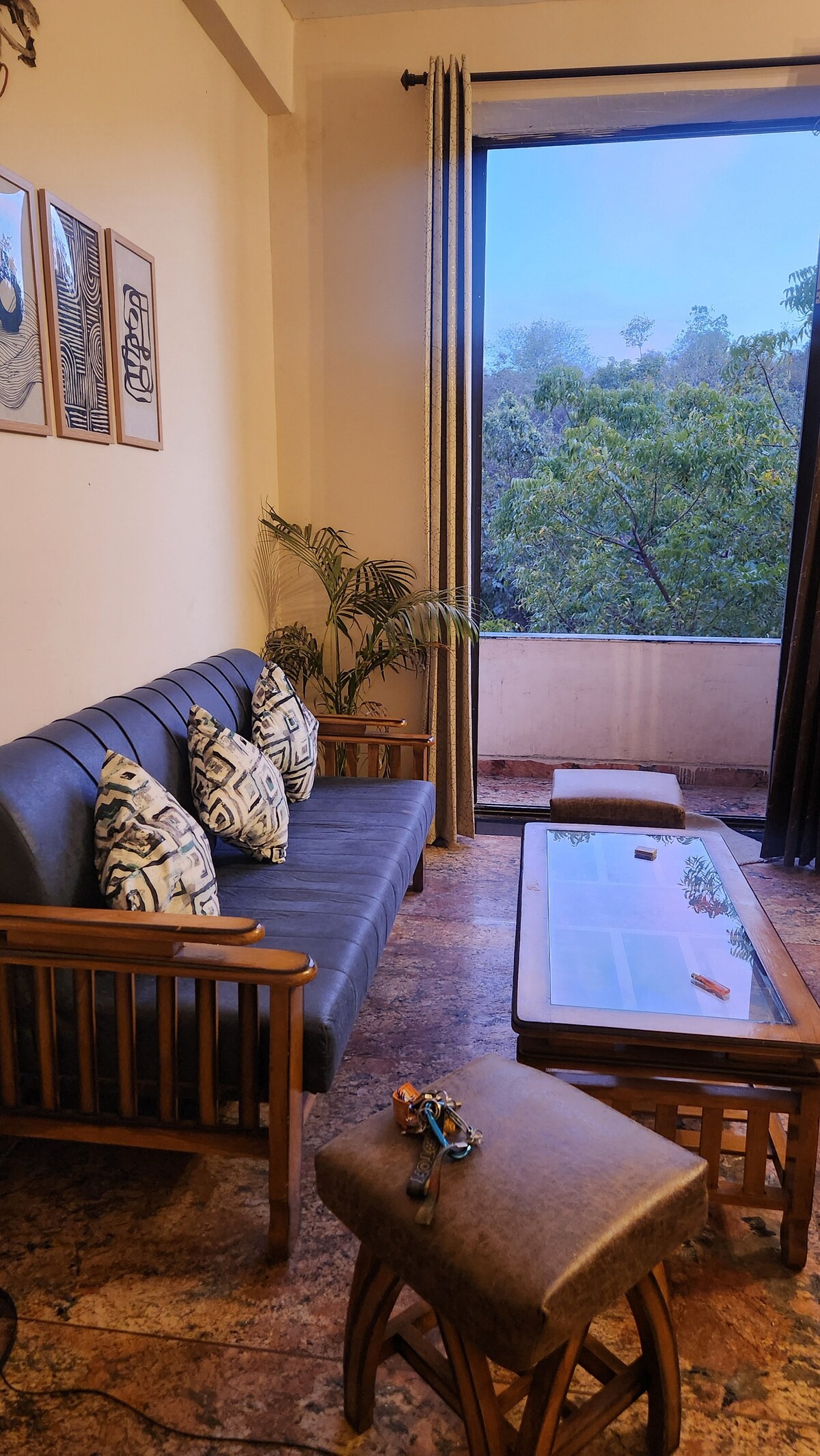 Relax with the whole family at this peaceful place to stay. It’s a 1 bhk with all amenities. For more occupancy, please check another “Hillside Sukoon | 2bhk” listing. Can accommodate more people as we’ve sofa cum beds and mattresses handy. We are ideal for work-from-home folks. We have a 200 Mbps Airtel connection, an Automatic washer, Ironing service (iron also available), RO, and a stereo. No decorations, no house parties. We are a pretty chill homestay, expecting similar guests.