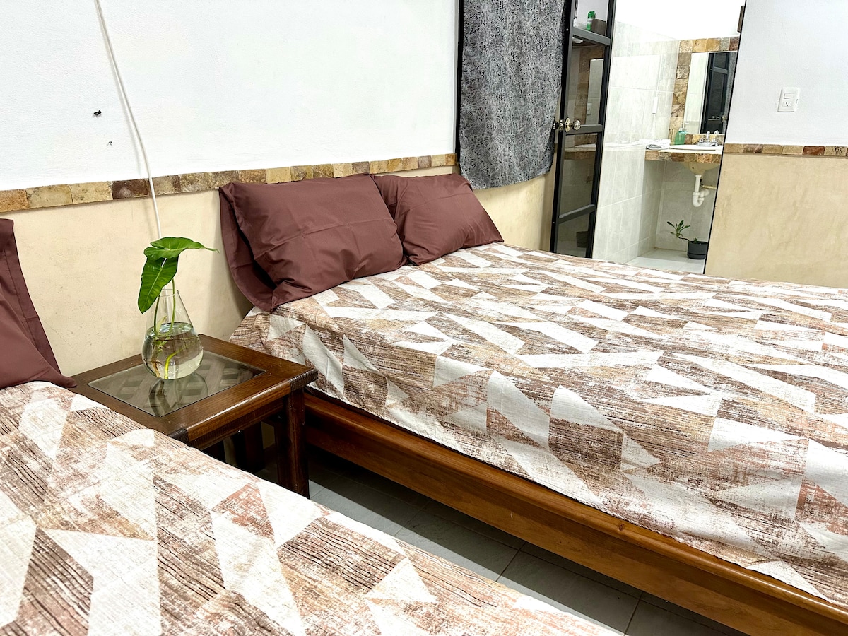 Located behind of the Central Cathedral of Valladolid, decorated with rustic furniture from local artisans, with 60 MB WiFi, hot water and A/C. A comfortable double bed will make your stay very pleasant, a balcony with views of the historic center to admire the beautiful Yucatecan life and walk in the colorful streets and feel the local vibes We support you with authentic experiences and local secrets 10m Central Cathedral and Park 300m Los Frailes road 400m Cenote Zaci 400m ADO station