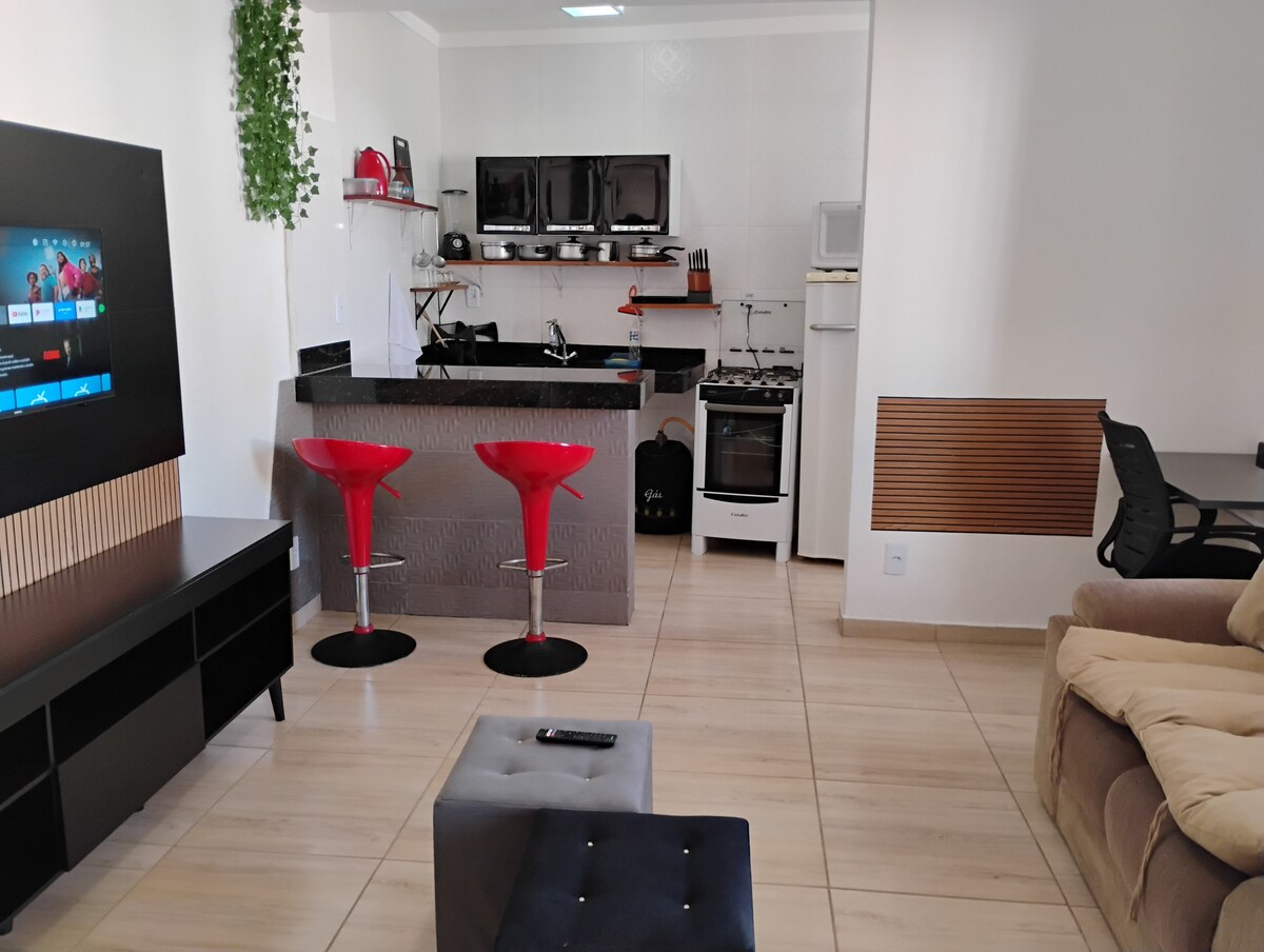 You will be comfortable in this place that has a large living room, kitchen with everything you need to prepare your meals, spacious room with wardrobe, a double bed and a single bed, pleasant bathroom and individual garage with gate. You will also have wi-fi, television, bedding and other amenities. The site has a camera on the outside area (balcony) to ensure total security for your accommodation! Welcome!