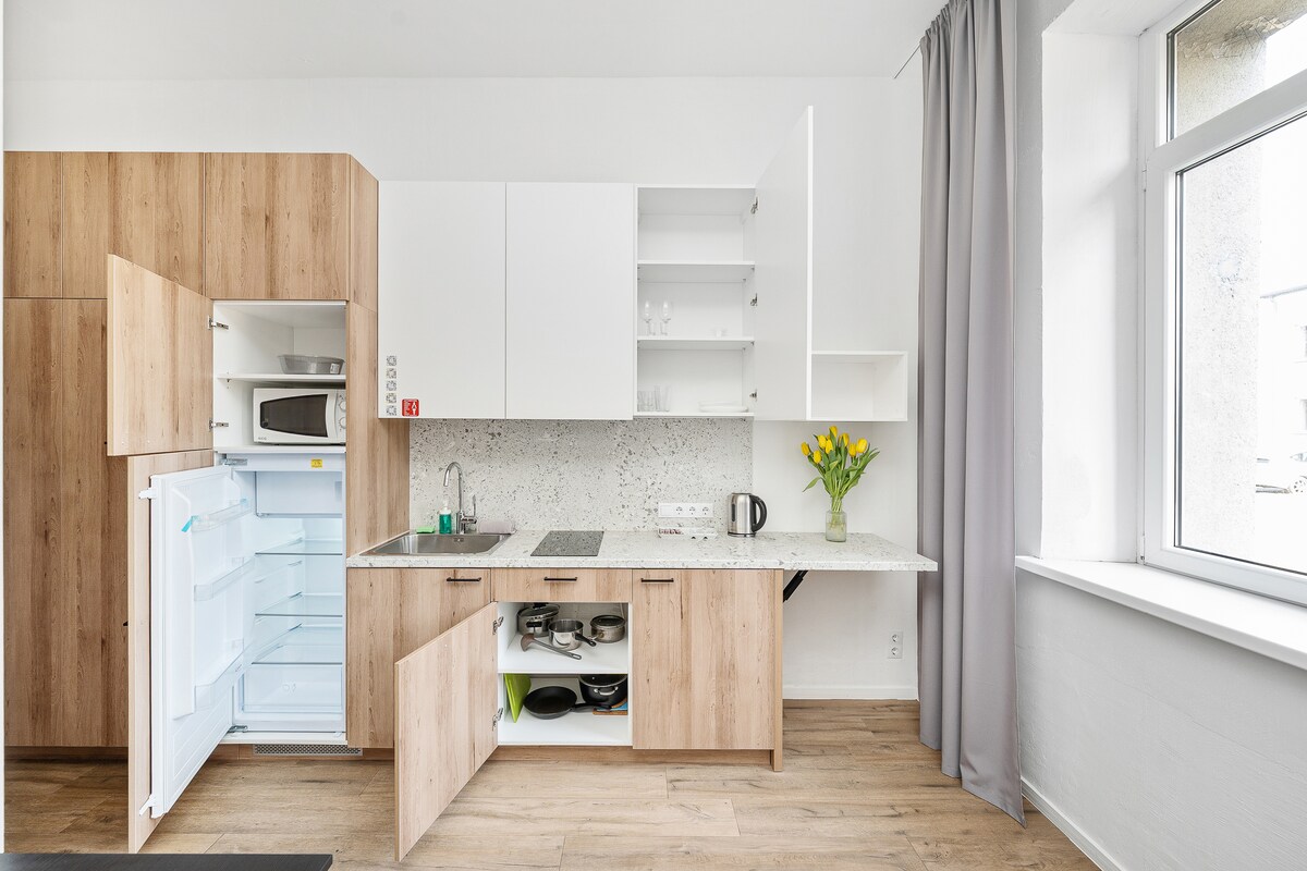 Enjoy a comfortable and modern stay in our recently renovated residence, located in the heart of Vilnius. The property offers bright studios with a fully equipped kitchen and private bathroom, ideal for both short stays and longer visits. Thanks to its central location, just a few minutes from the Old Town and the central station, it is the perfect starting point to explore the city and experience the authentic atmosphere of Vilnius.
