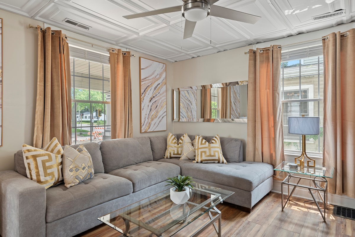Escape to our spacious 6-bedroom Springfield retreat for 12 guests! This historic home blends modern style with classic charm, featuring a fully equipped kitchen, multiple living areas, and a private yard. Perfectly located just minutes from downtown, Lincoln Historic Sites, and the State Capitol. Ideal for large families or groups seeking a stylish and convenient base to explore the city. Layout: It is well-suited for large families or groups, with bedrooms and bathrooms distributed floors.