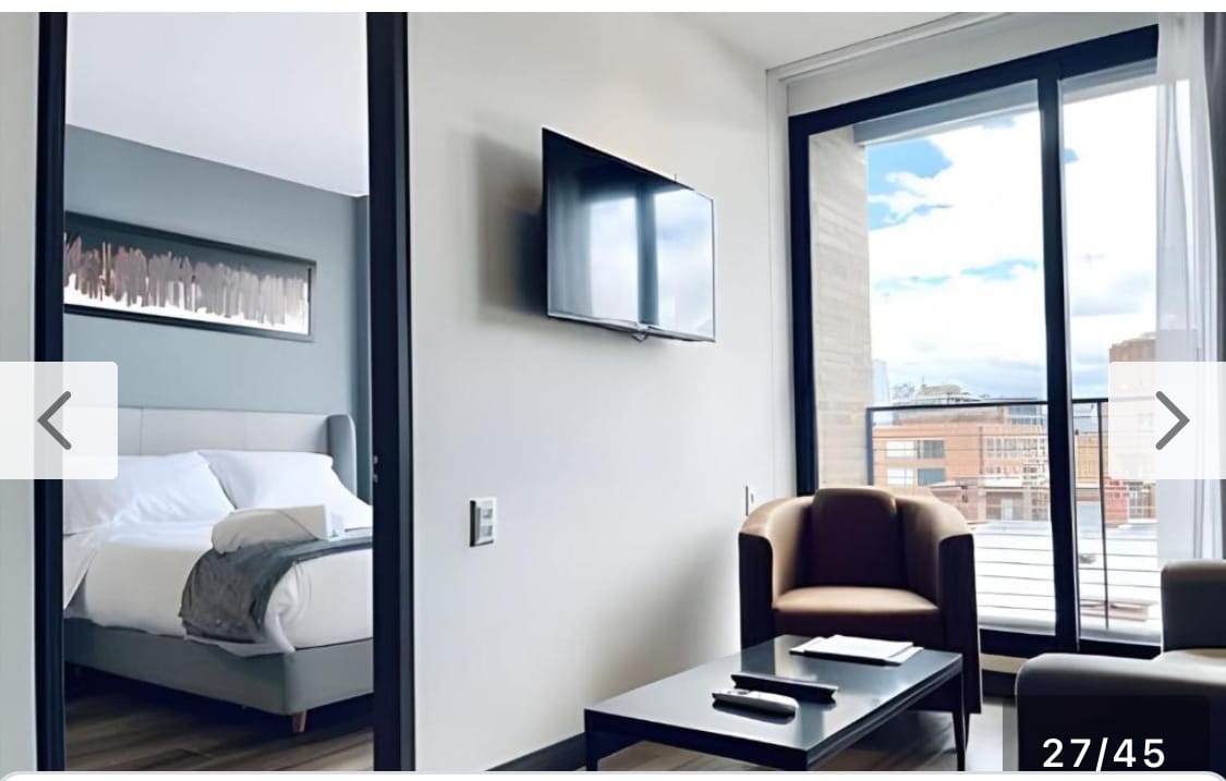 🌆 This accommodation is located in Quinta Camacho, a bohemian and vibrant neighborhood. 🌇 Enjoy the view from the 15th floor balcony and explore nearby restaurants and bars. 🛋️ Quiet and comfortable space to relax. Ideal for couples and solo travelers. 🏙️ 15th floor with spectacular views 🛏️ High-quality hotel-grade mattress 📺 65” TV with Netflix, Prime Video, and Disney+ 🏊 Swimming pool (reservation required), cardio area, game room 🚶 Steps away from Zona T and the financial dist