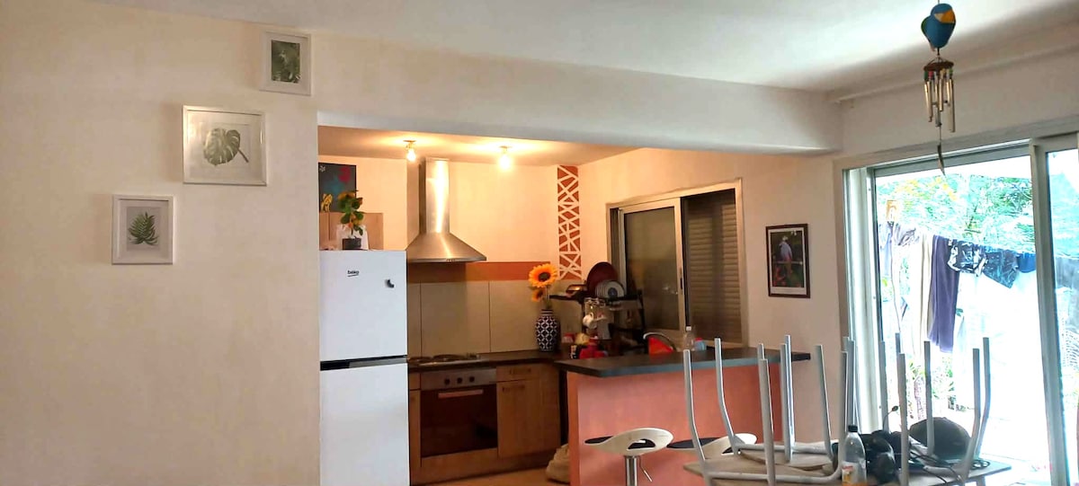 Our house is a family home in the middle of nature, quiet but located 5 minutes from the village of Pouembout and all amenities. Large garden of 50 ares with no neighbors opposite with mountain view. In the garden: Large chicken coop with chickens (fresh eggs guaranteed every day), creek at the bottom of the garden ideal for relaxing in the shade and paddling, vegetable garden and swing and slide for children. Above-ground pool that can be secured for children by removing the access ladder.