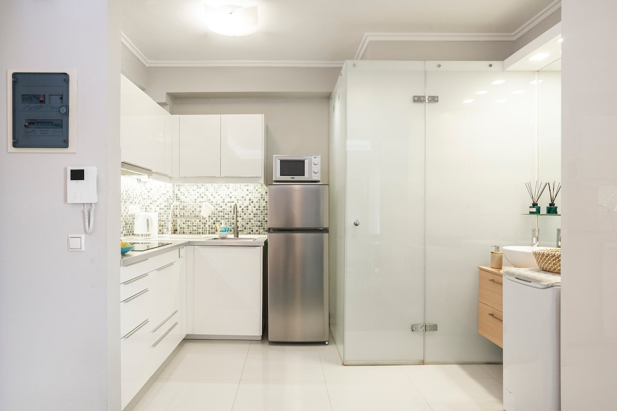 Our boutique studio (24 sq meters) on the 4th floor is perfectly located by the sea in the prestigious area of Voula, with an amazing view over the Saronic gulf even from the comfort of your bed! Its ideal location gives you the opportunity to enjoy a variety of beach places and also provides you easy and fast access to public transportation. Fully renovated in 2019 is aiming to make your stay very comfortable and enrich your travel experience! Ideal for couples, friends or business travelers.