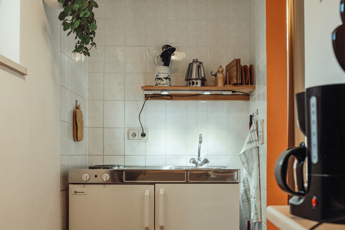 Far from the hustle and bustle of the village, surrounded by meadows and fields, is our apartment on a historic mill farm. First mentioned in 1311, it is one of the oldest properties in the village The guest suite (Müllerstube) is a self-contained apartment on the first floor of the house and can be locked separately. You will find a kitchen with cooking and dining facilities, a dressing room, a bathroom with shower and a spacious bedroom with a double bed and two single beds.